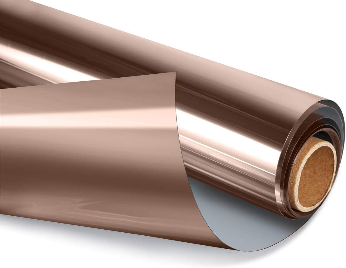 HIDBEA One Way Privacy Window Film, Daytime Mirror Reflective Heat Control UV Sun Blocking Non-Adhesive Static Cling Window Tint for Home and Office (Brown-Silver, 35.4 Inch x 32.8 Feet)