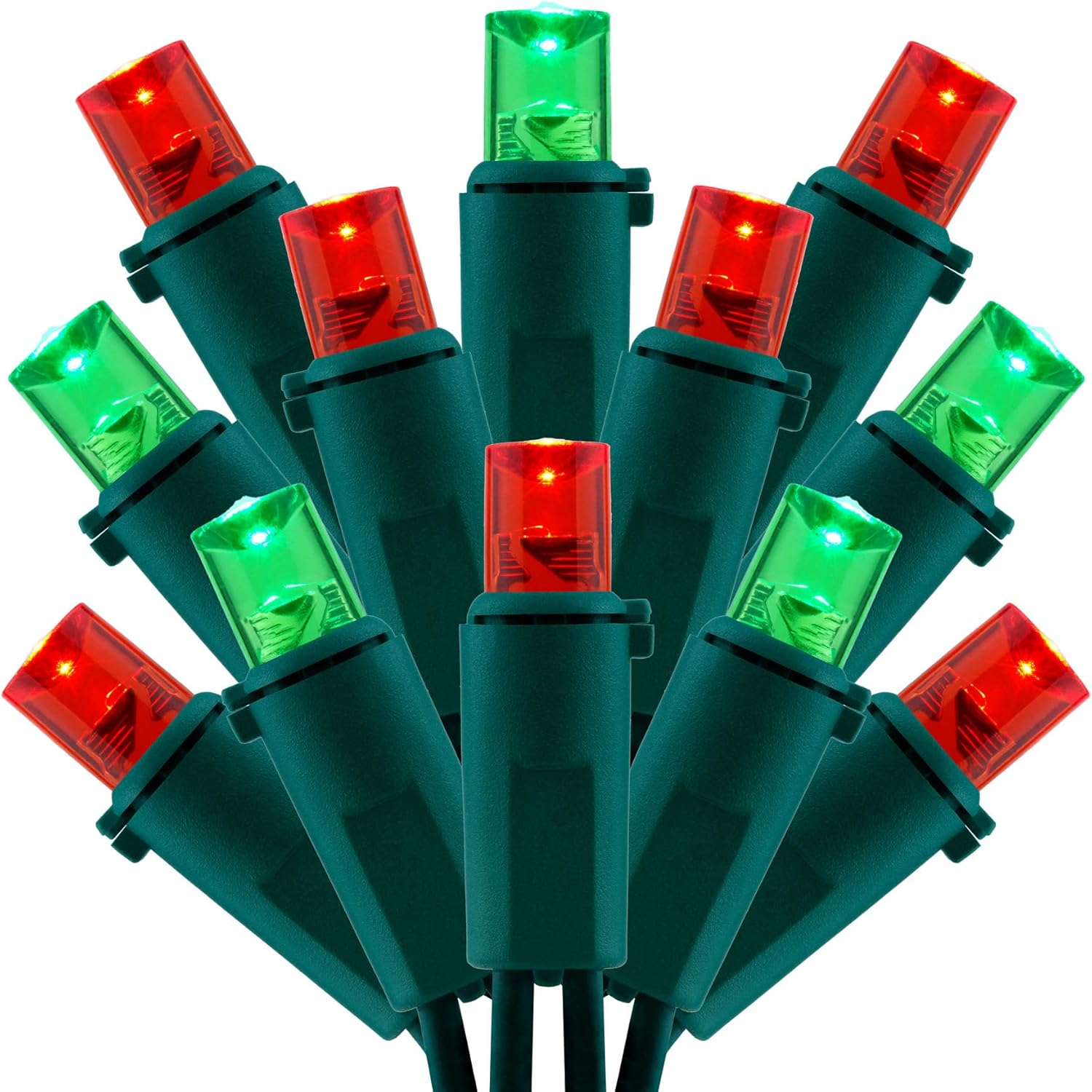 - Red-Green Interval β Featuring 200 red & green 5mm LED bulbs, with 4-inch spacing, the red and green lights are arranged in intervals between each other. Red and green constitute the main colors of Christmas, and they are Christmas lights that will never go out of style. The wide angle bulbs feature multi-angle light source technology, providing a wide and even distribution of light. The independent light heads allow the light to diverge at multiple angles, ensuring that no corner of your Christ