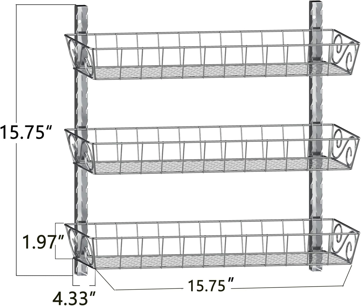 SWOMMOLY Adjustable Wall Mount Spice Rack, 3-Tier Dual-use (Multi-use) Organizer, Silver