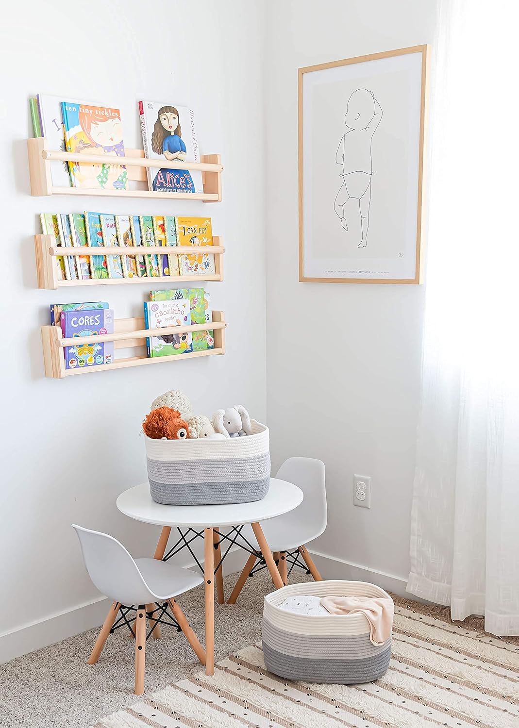 - Discrete, Built-In Carry Handles – These fabric rope baskets for storage also feature slim hand holds built right into the sides of each round basket for a seamless look that’s also functional. Perfect for picking up toys or carrying items around the house.
