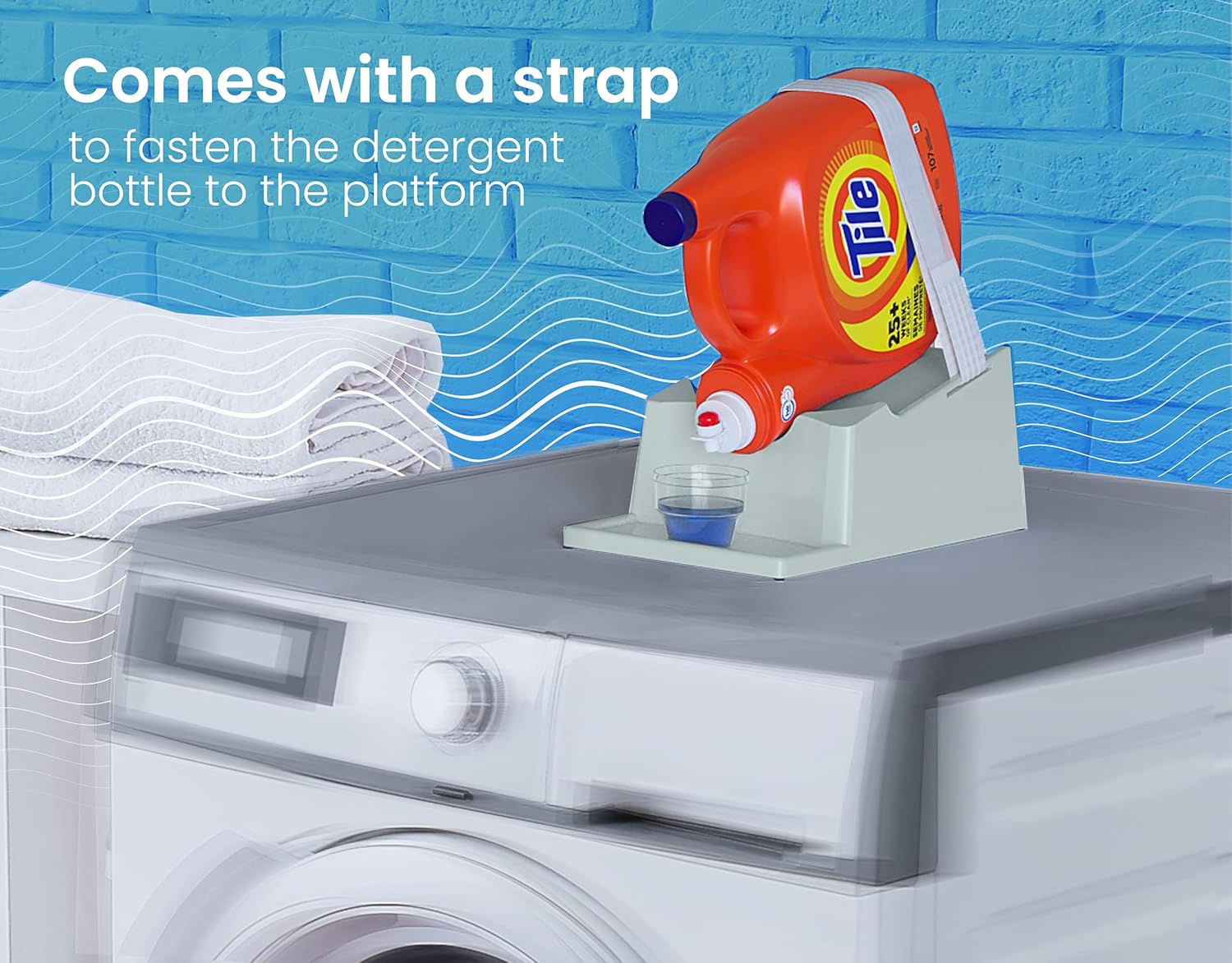 - [Safe Attachment]: The laundry detergent shelf or holder features a secure strap that firmly attaches and ensures your detergent bottle stays in place and minimizing the risk of accidental falls and spills.