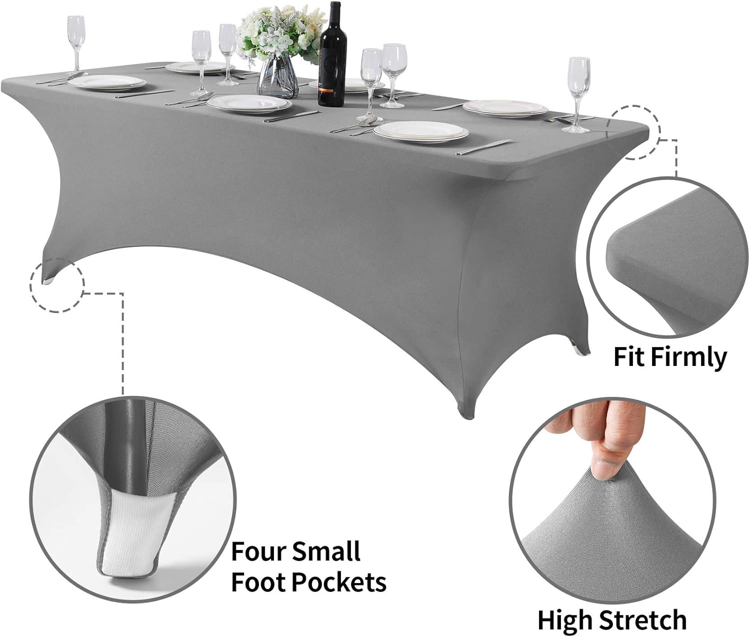 - Easy to use: Easy to set up with four-way stretch spandex material and four pockets for legs are designed for keeping the tablecloth securely in place to fit your table better.