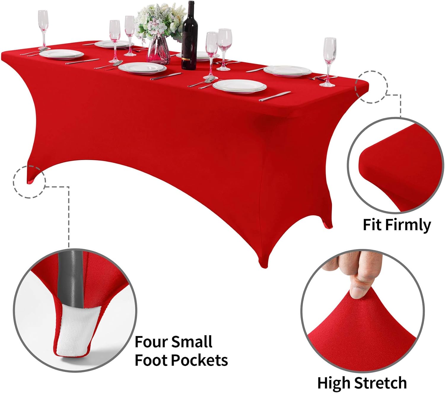 2Pack Spandex Table Cover for 6Ft or 4fT or 8ft Table Universal Fitted Stretch Tablecloth for Party, Banquet, Wedding and Events-Red