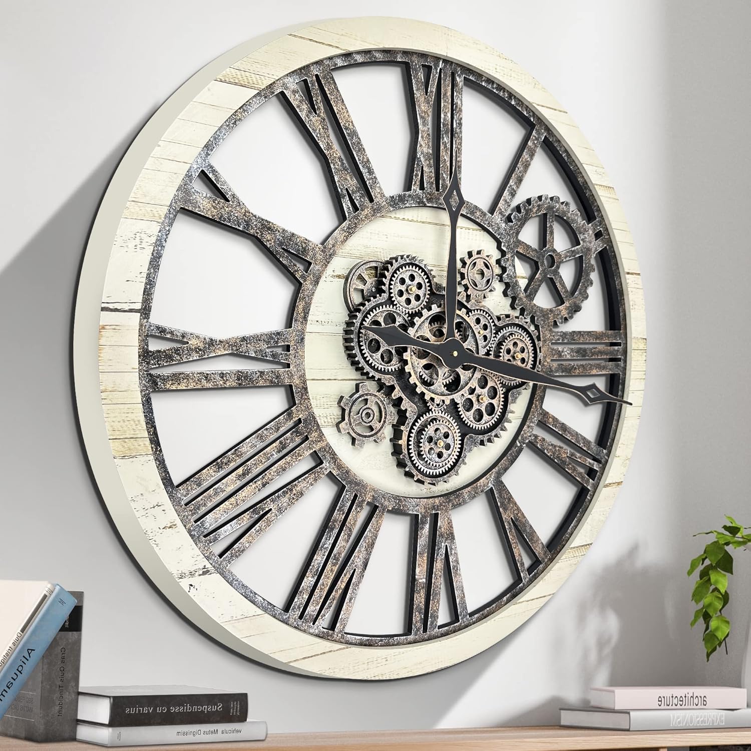 HOIBAI Large Wall Clock, Wall Clocks for Living Room Decor 30 Inch Farmhouse Vintage Rustic Kitchen Wall Decor Vintage Roman Oversized Wall Clock for Home Bedroom House, Moving Gears Clock