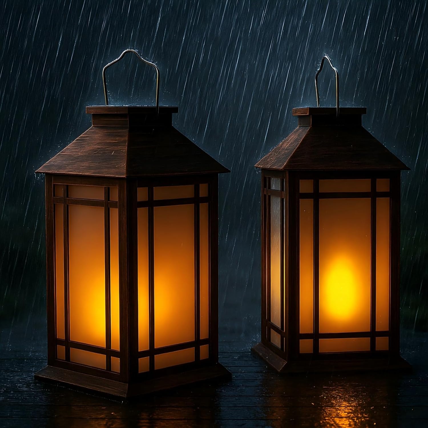2-Pack 13" Vintage Candle Lantern with Led Flameless Candle (6hr Timer) - IP65 Waterproof Battery Powered - Outdoor Patio Hanging Lanterns Decorative Tabletop Lanterns