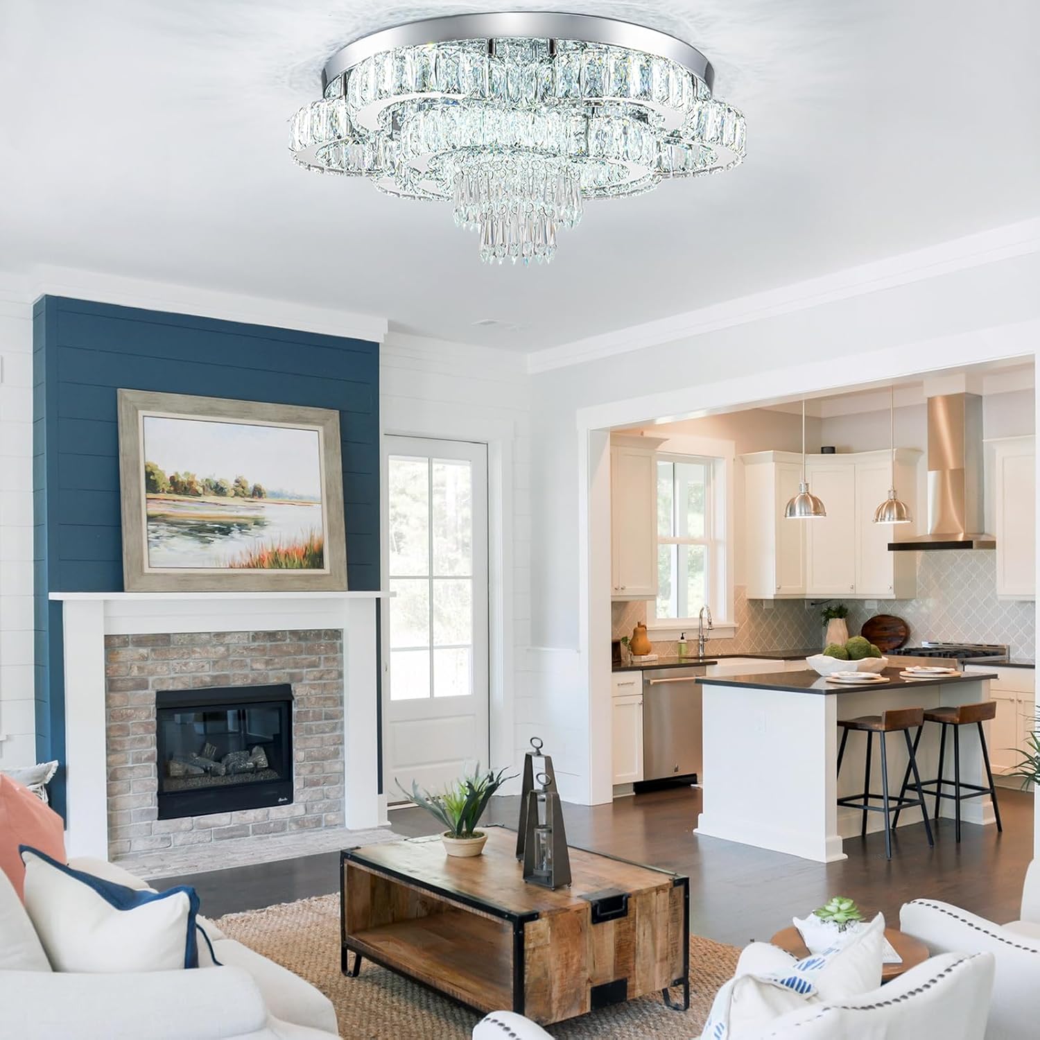 - -Wide Applications: itβs perfect to put this flush mount chandelier in large space or low ceiling such as your living room, dinning room, kitchen, bedroom, closet, foyer, porch, farmhouse, hallway, hall, study etc.