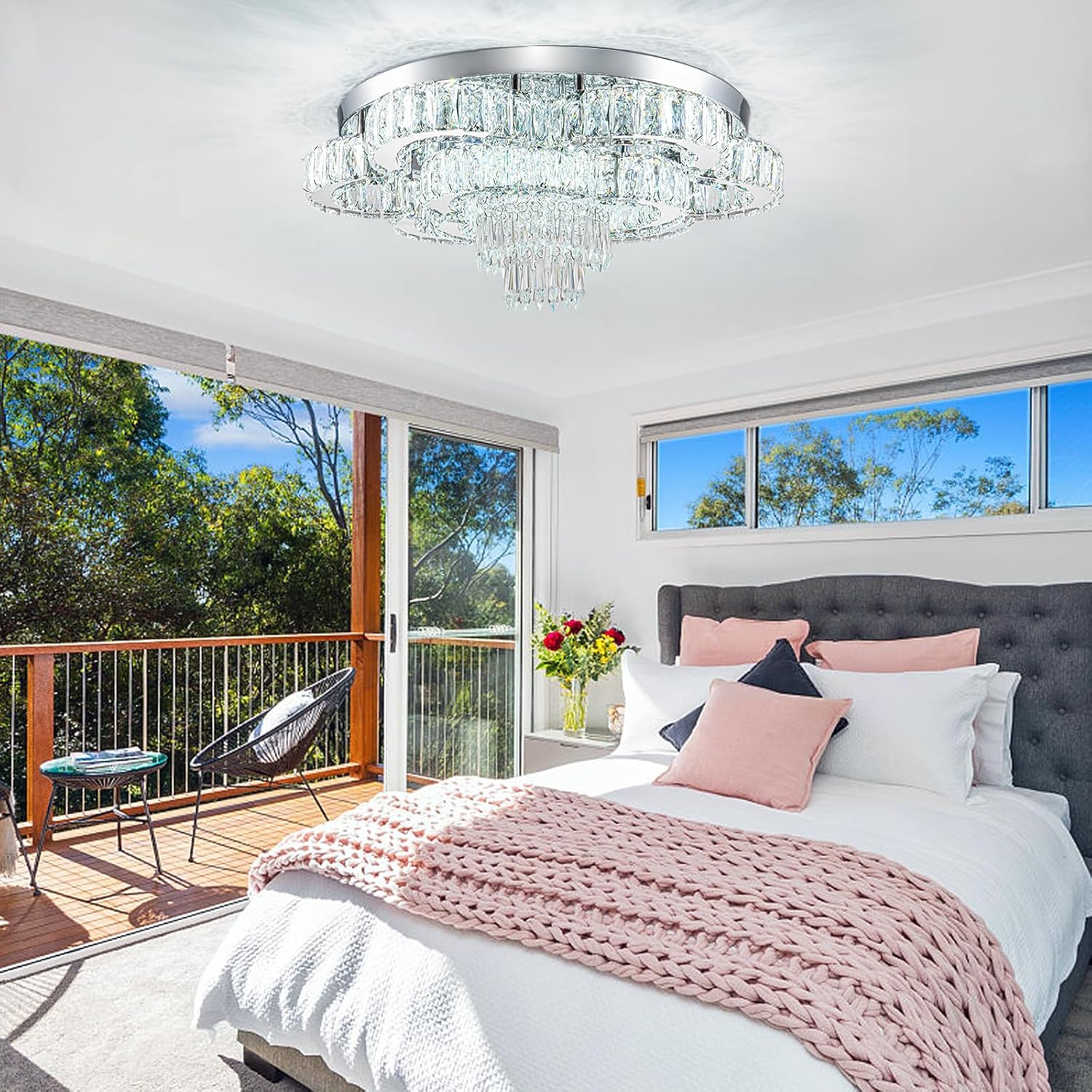 21 Inch Crystal Chandelier LED Flush Mount Ceiling Light Fixtures Luxury Chandeliers for Living Room Bathroom Bedroom Entrance Dining Room(Cool White)
