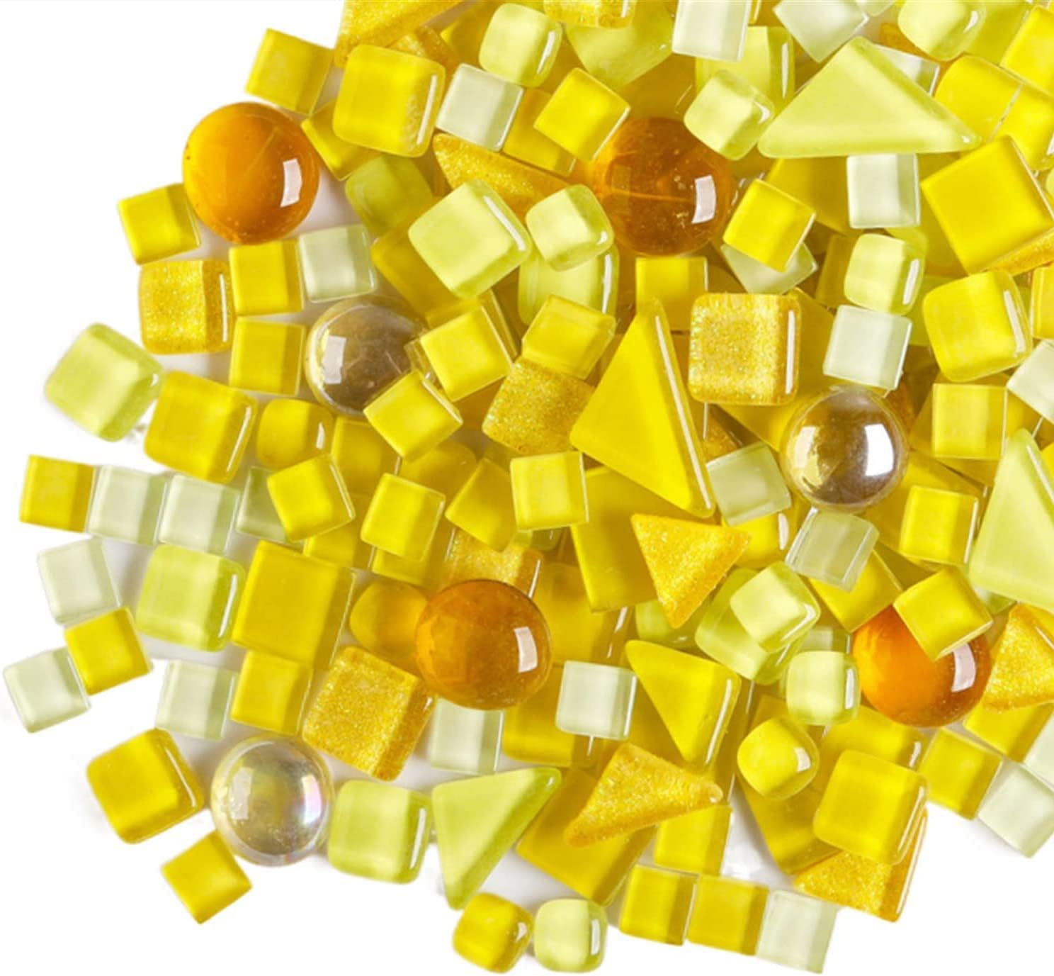 1.1 LB Irregular Crystal Mosaic Tiles,Small Particle Color Decal Crystal Glass Tile DIY Hobbies Children Handmade Crystal Craft for DIY Handmade Decorative Materials (Lemon Yellow Series)