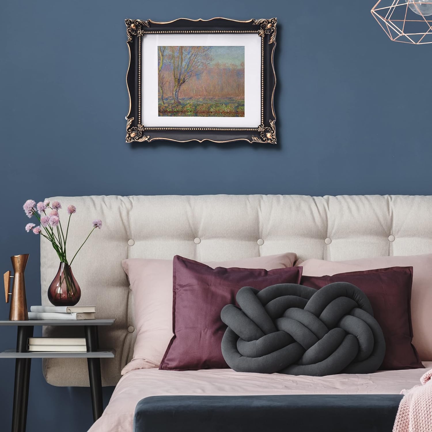 - Easy to Display: This 11x14 black ornate frame comes with a removable white mat and a decor picture. The white mat can be entirely removed for 11x14 paintings or keep it for 8x10 paintings, perfect to display any photos or paintings. The back of frame is a soft velvet back plate equipped with two-way serrated hook, which can be hang on the wall in vertically or horizontally.
