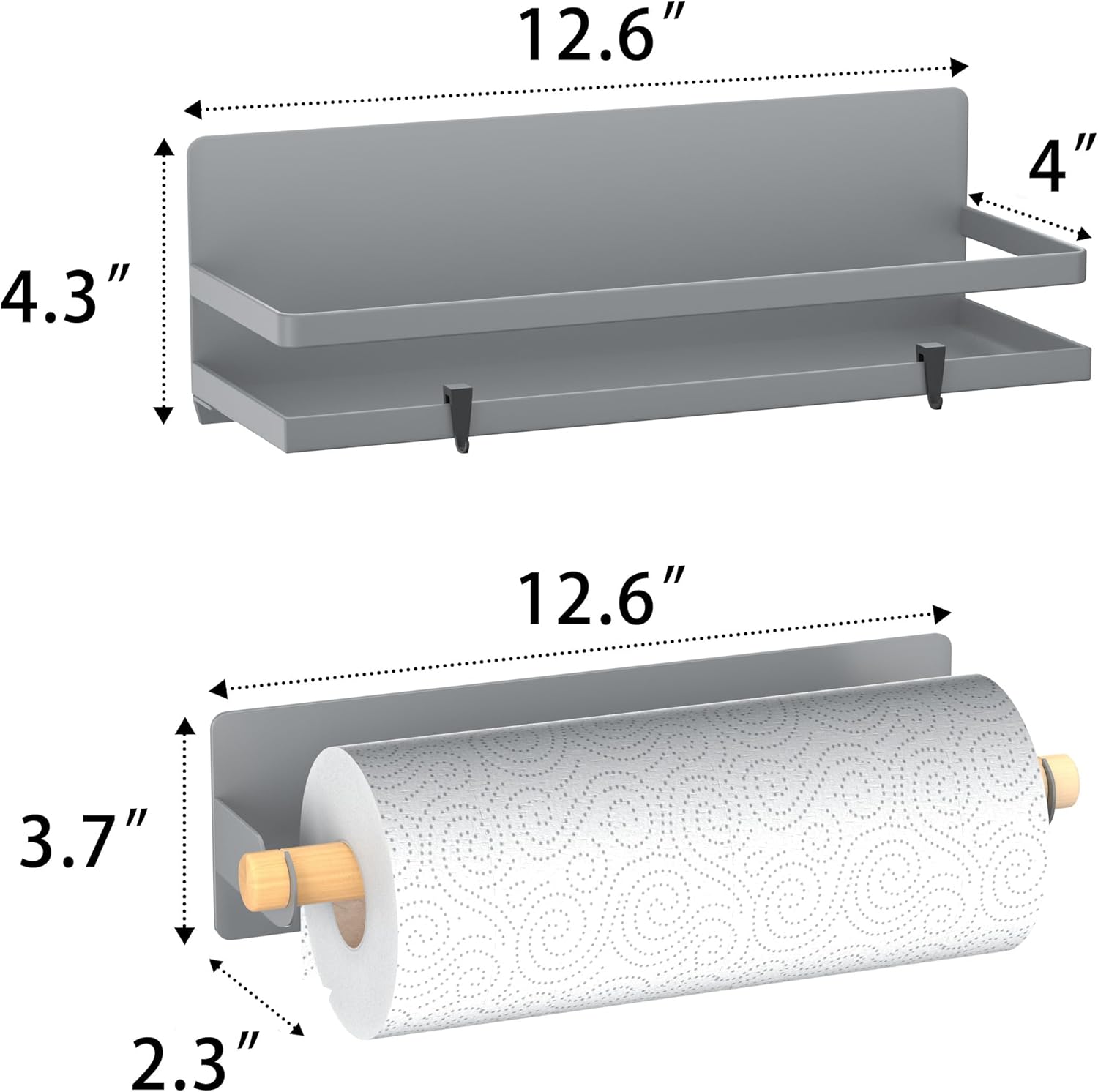 - 【PRACTICAL SIZE】Spcie Rack:12.6"L×4"W×4.3"H. Paper Towel Holder:12.6"L×2.3"W×3.7"H. The paper towel holder is sized to fit most sizes of kitchen paper towels.