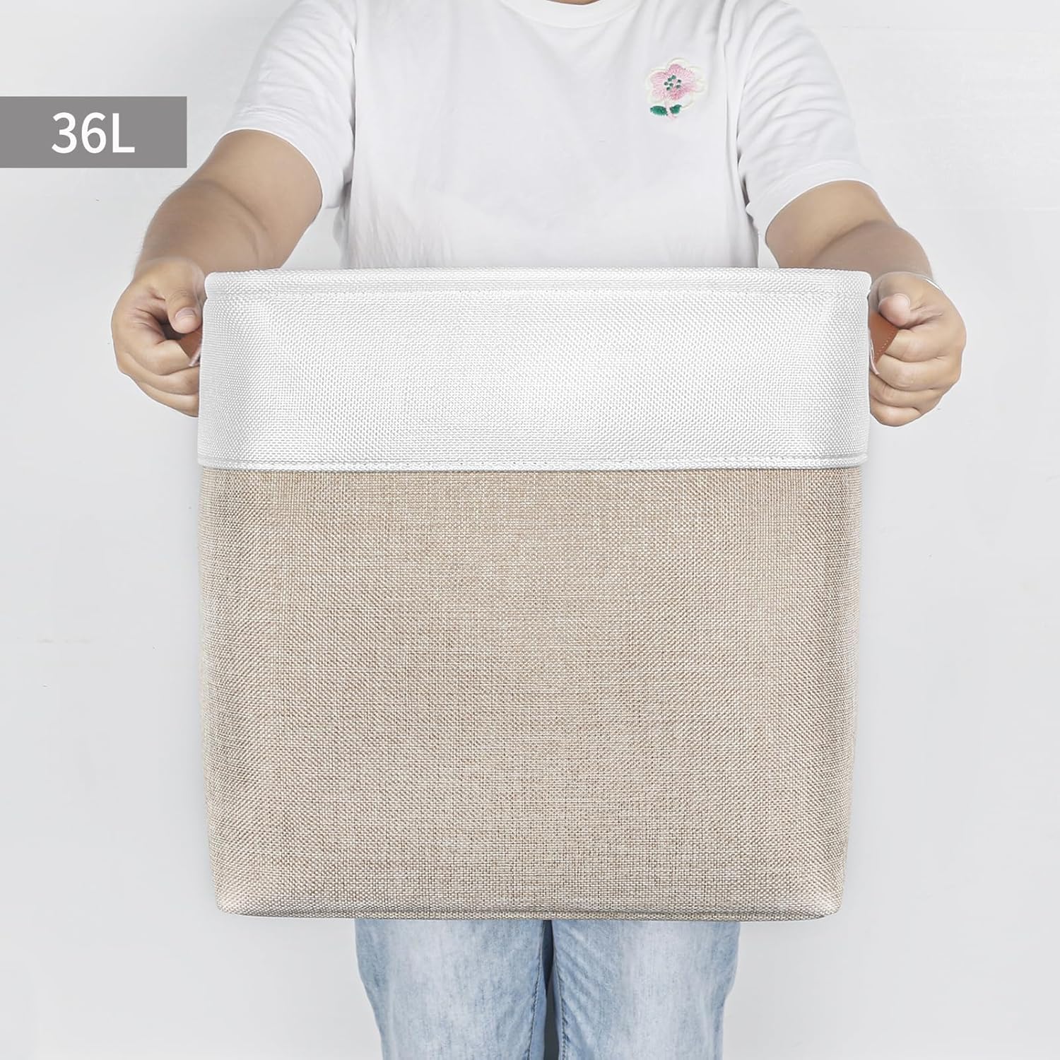 13x13 Cube Storage Bins, Collapsible Fabric Storage Box, 4 Pack Closet Baskets with Handles for Organizing, Shelf, Toys, Clothes, Home, Office, Nursery (Beige&White)