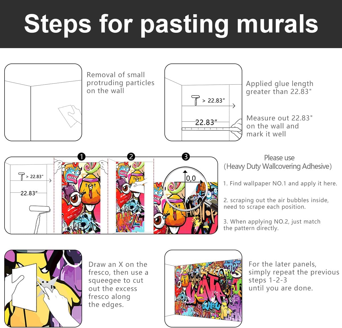 -Street Art Graffiti Wallpaper Fabric Wallpaper Living Room Bedroom Bathroom Boys Girls Children's Room Abstract Large Wall Mural- 183"x120"( not Peel and Stick)