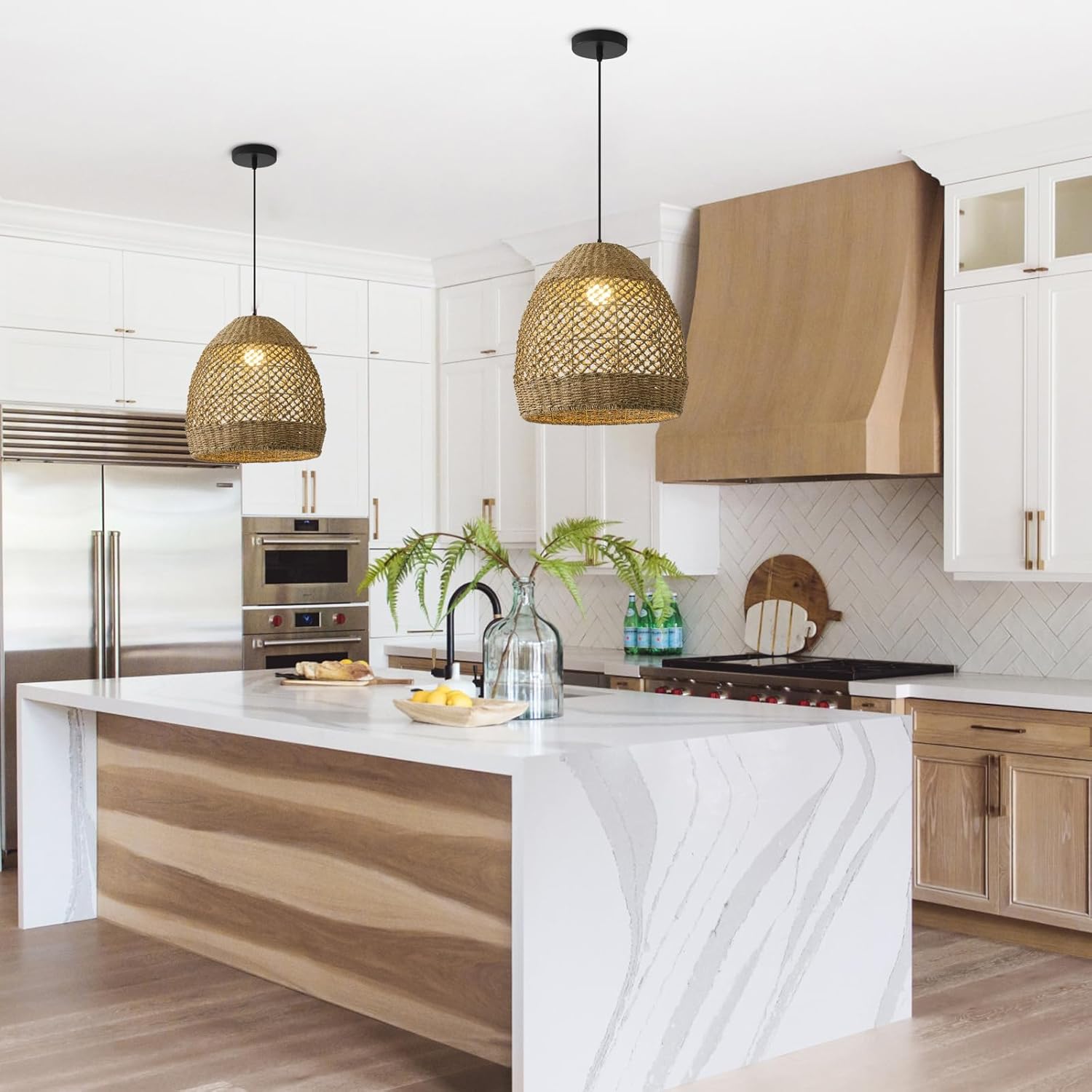 - 【Excellent Design】Natural water plants rattan weave craft, the pendants are made of natural materials. The lights are hand woven with by rattan craft superb skills bamboo artists. Decorated with classic tropical style elements, creates a wonderfully new look