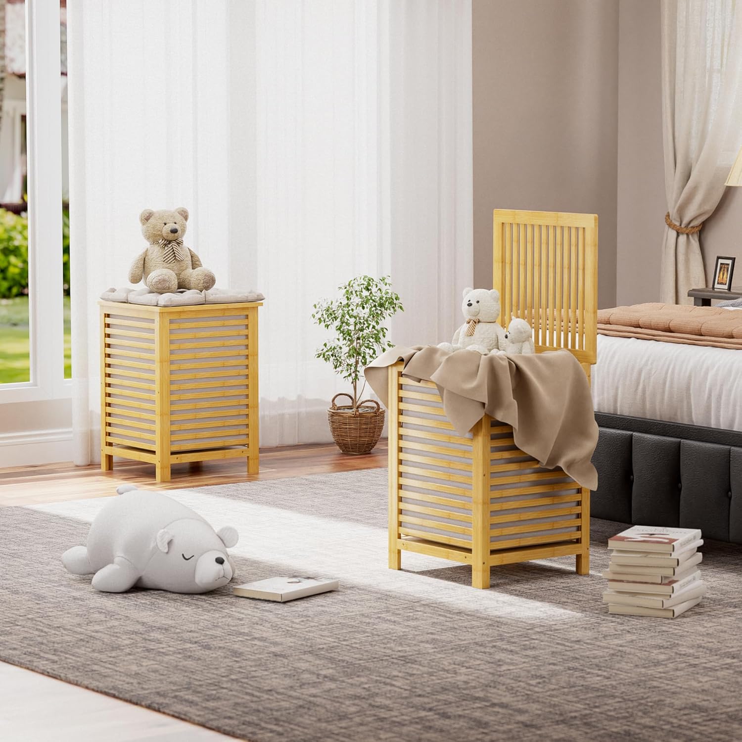 - β REMOVEABLE LINER BAG - The liner bag divided into two storage spaces is removable. When you need to do laundry, just open the lid, lift the handle of the inner bag, and carry it next to the washing machine. Very convenient for transportation from the laundry basket to the washing machine