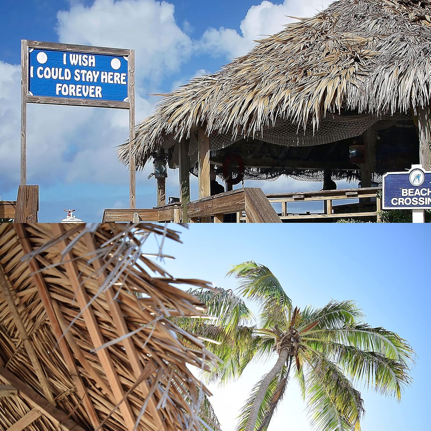 - DURABLE AND DURABLE: Our artificial palm straw will not rot or fade like natural straw, and will stay in good condition for a long time without worrying about updating your roof thatch frequently. It can be cut and bent arbitrarily, and its size can be determined according to your needs.