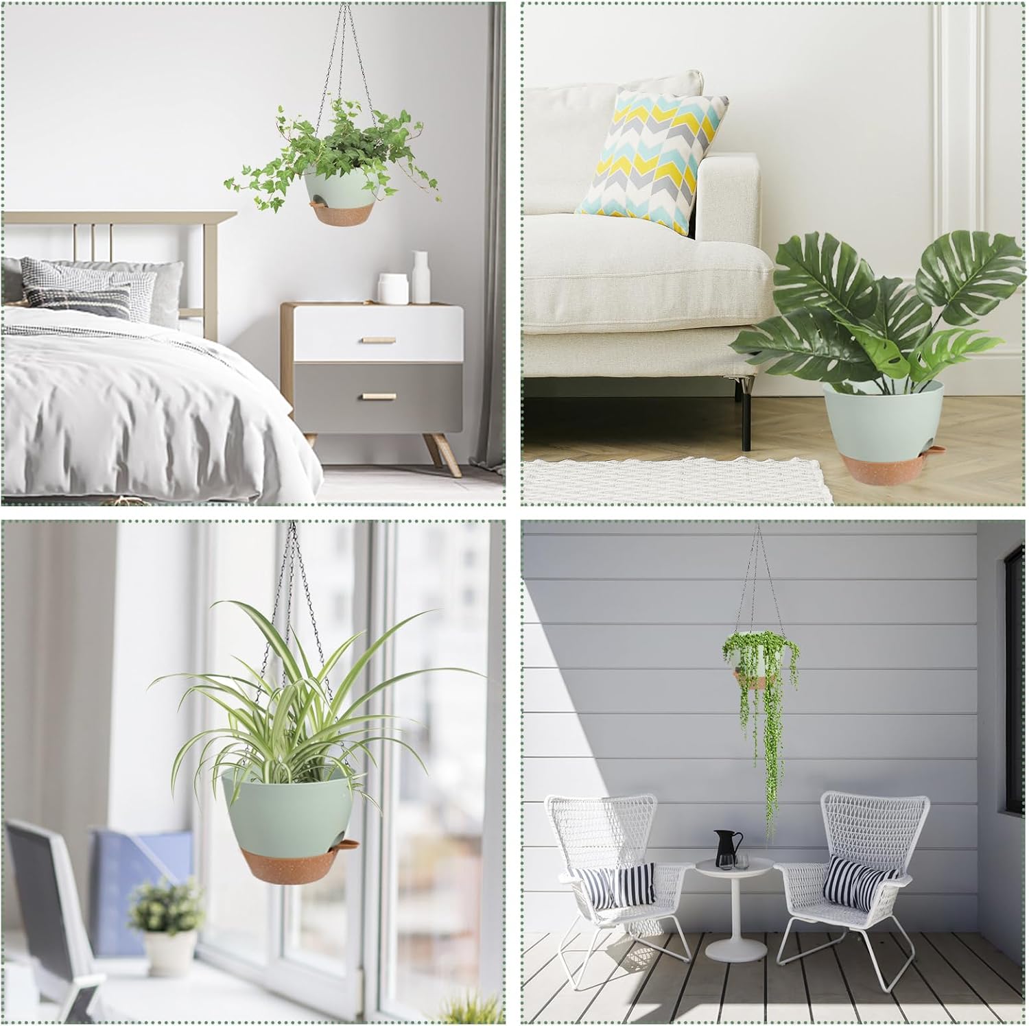 - Durable Material - Large planters for indoor outdoor plants feature thick sidewalls and a super load-bearing triangulated chain with three rust-resistant chains and hooks, ensuring durability and increased stability. Hanging planters with a vertical hanging design, it conveniently saves space.