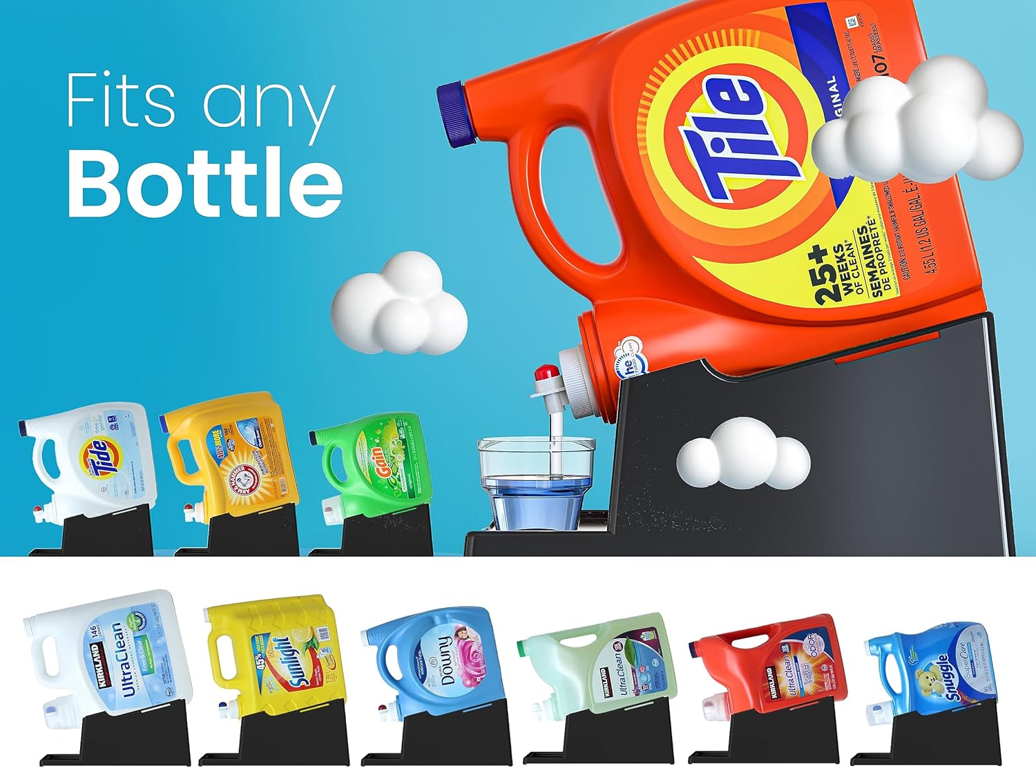 - [Versatile Fit:] The liquid laundry detergent holder station's optimal size (7.9"L x 12.2"W x 5.5"H) accommodates various bottle sizes, providing a perfect fit for most detergent containers without taking up too much space. (Laundry Soap, Cup, and Bottles NOT Included)