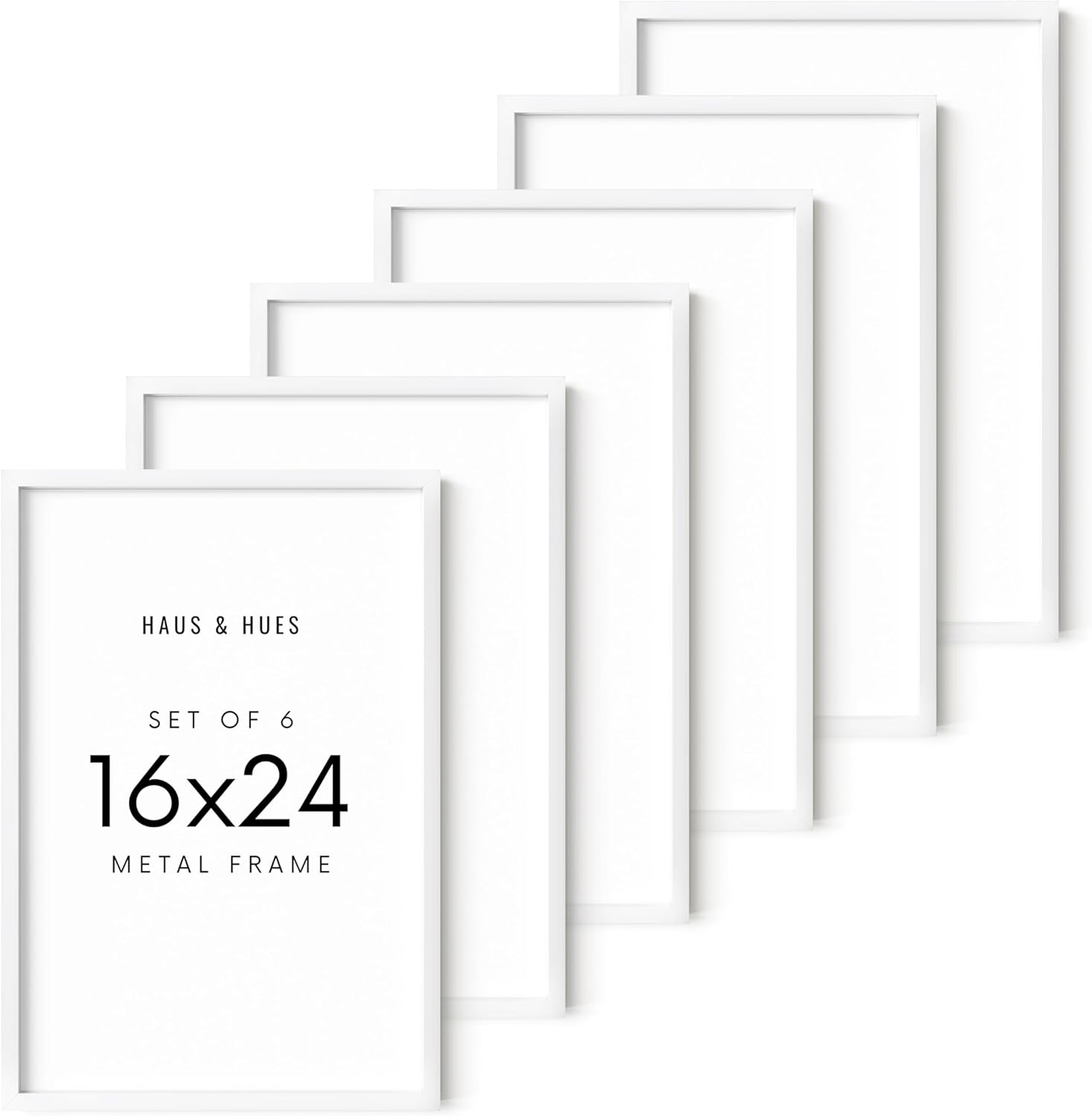 HAUS AND HUES 16x24 White Metal Picture Frames - Features Premium Aluminum, Vertical & Horizontal Hang, Shatterproof Plexiglass - Perfect for Home, Room, Office (16x24 in, White, Set of 6)
