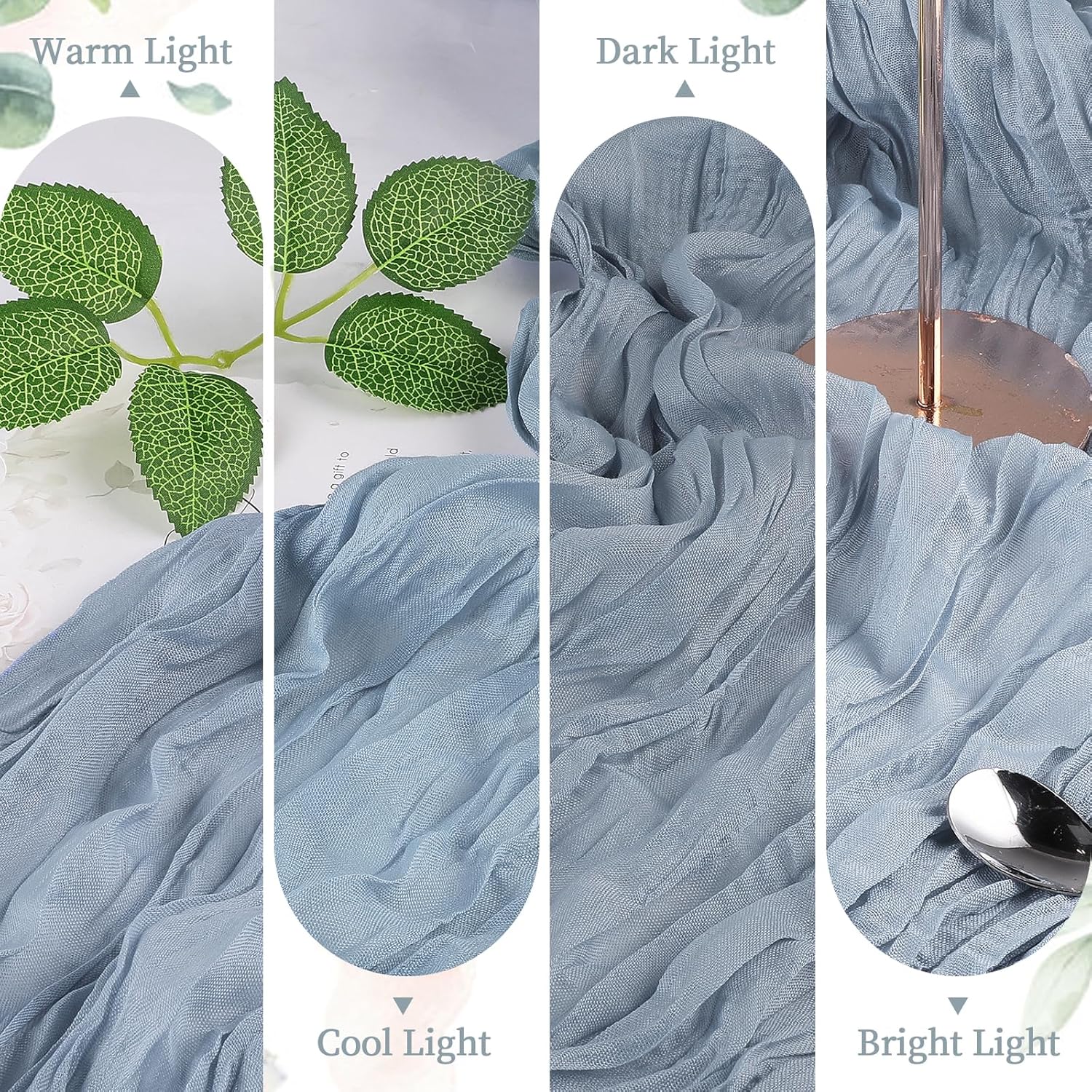 - PREMIUM MATERIAL: The cheesecloth table runner is made of high-quality polyester. Carefully sewn, delicate edge, not easy to lose thread, not easy to decolorize, lightweight and skin-friendly, can be cut into any length and shape. High-quality fabrics hang on banquet tables to add a romantic, sophisticated and fluid atmosphere and can be paired with flowers, candlesticks, greenery and other decorations to impress guests