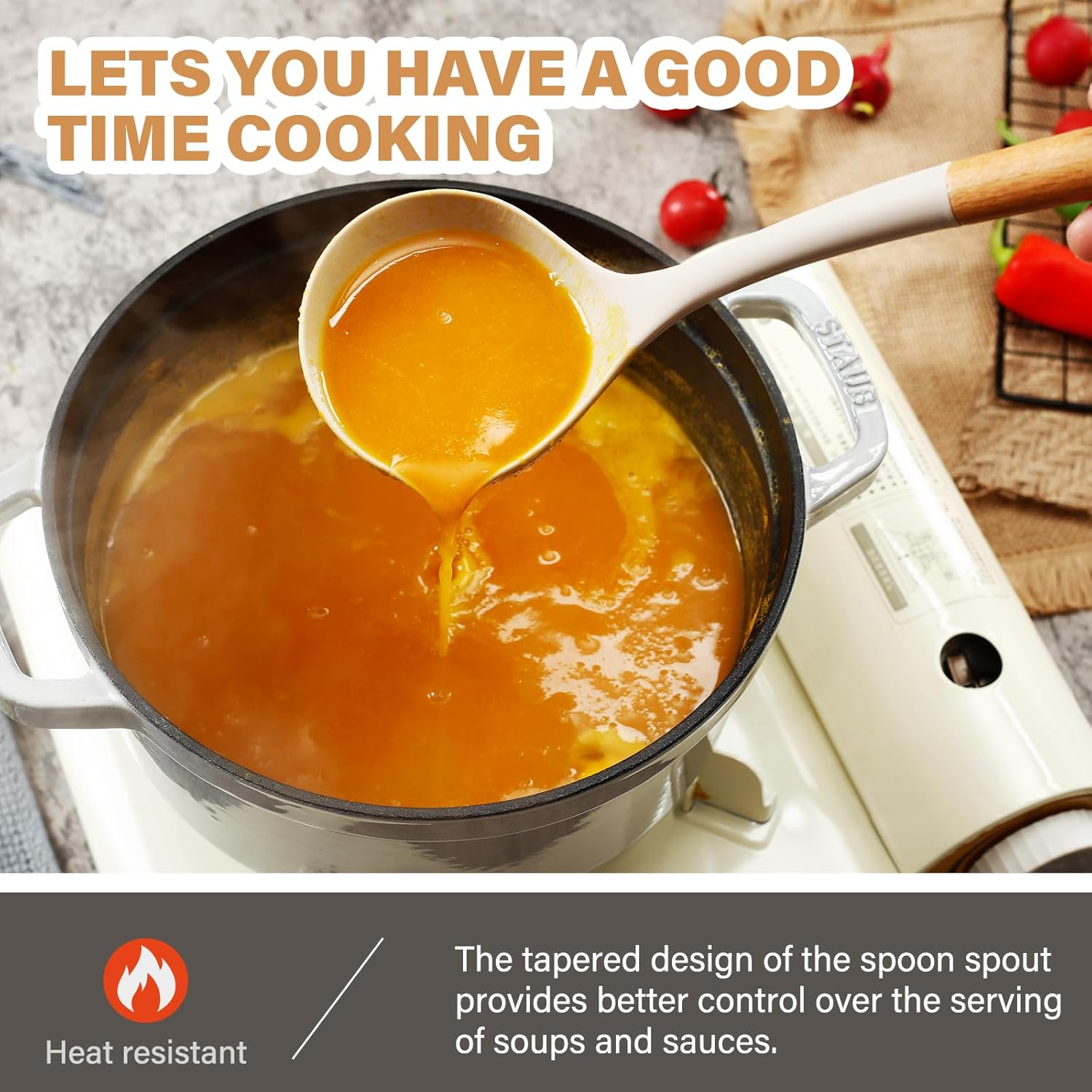 - HEAT RESISTANT, GREAT FOR NON-STICK PANS: Our utensil sets can handle temps up to 446°F without melting. The soft silicone won't scratch non-stick surfaces. The handles are firmly attached. They're durable, making cooking easier and helping your cookware last longer
