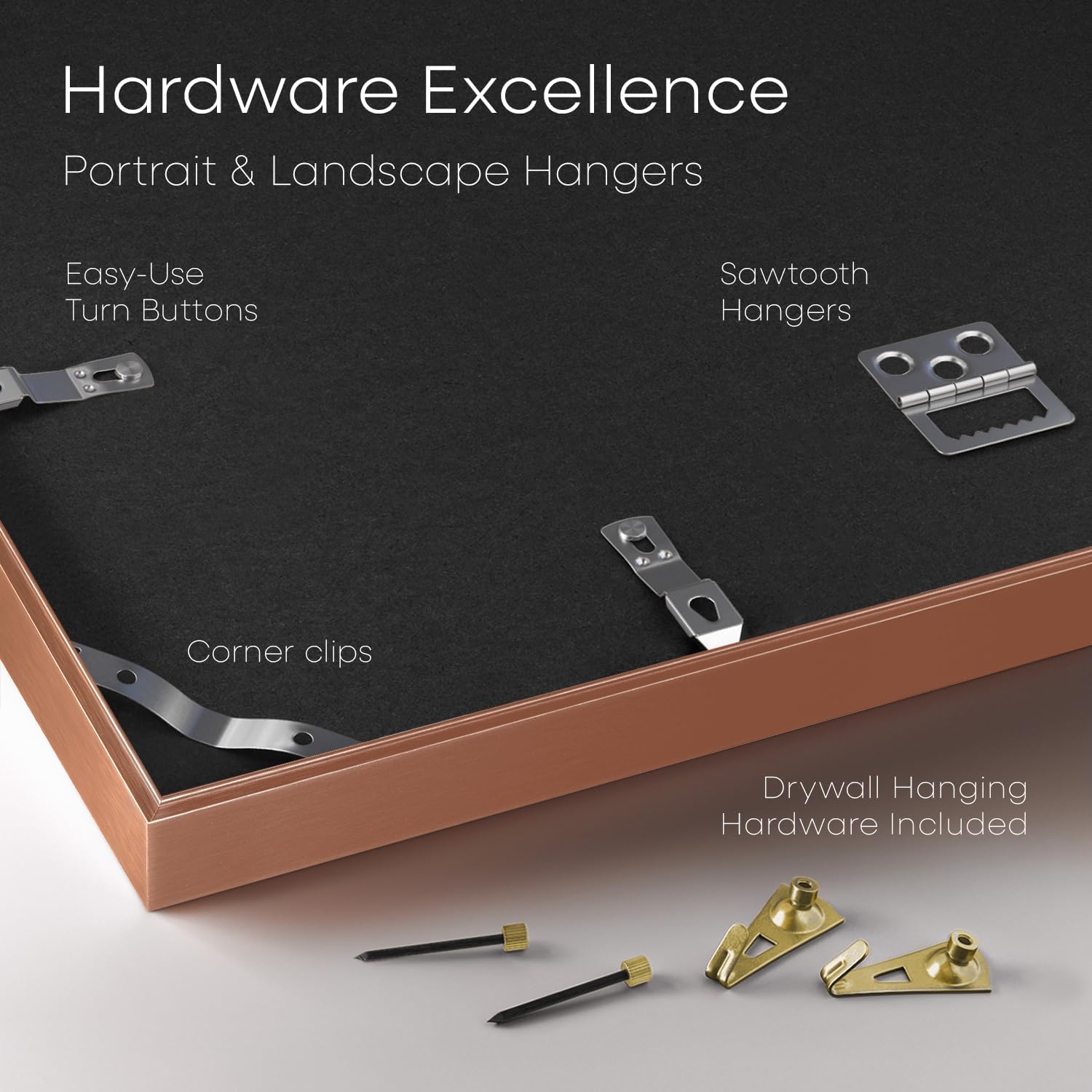 Homeforia 13x19 Picture Frame Rose Gold, High End Metal 13x19 Poster Frames with Mat 11x17 inch Photo, 13 x 19 Rose Gold Frame Matted to 11 by 17 Print, 19x13 Frame, Tempered Glass, Wall Kit, Set of 1