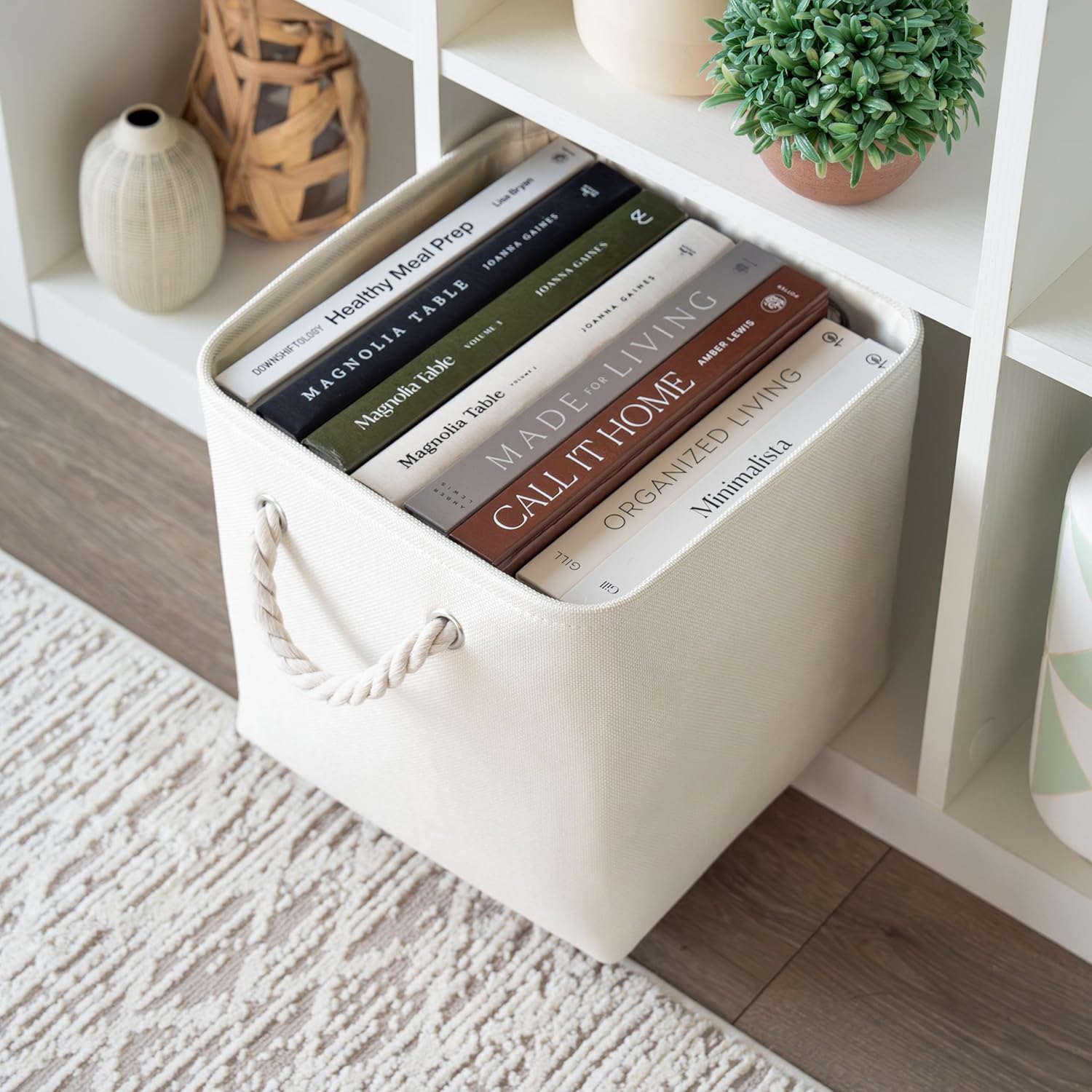 - Decorative Fabric and Rope Handle - These versatile 11 x 11 storage cubes baskets for organizing your everyday life are made with a thick, high-quality fabric and fitted with rope handles to add a stylish touch to a living room, bedroom, office, or personal space.