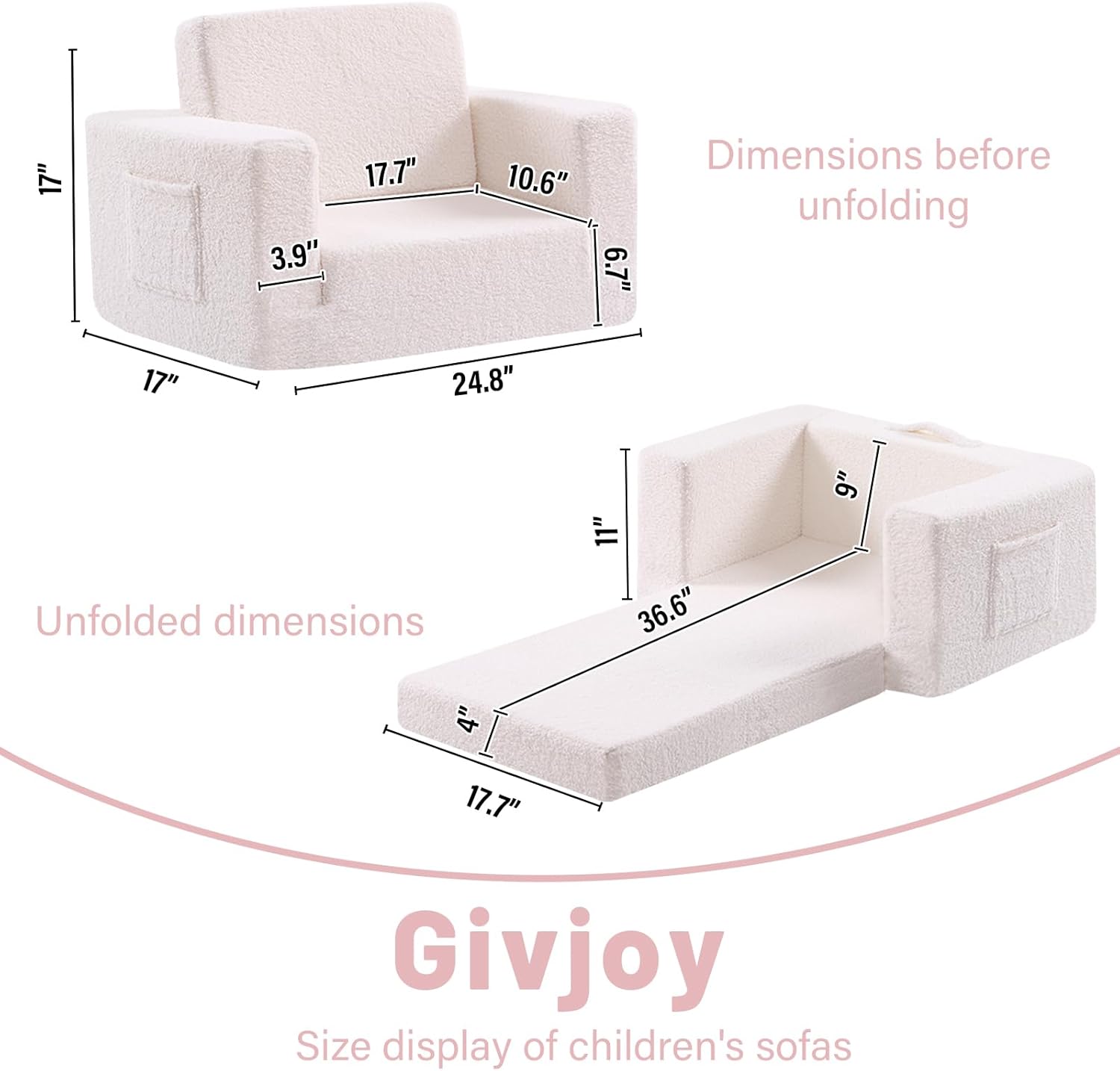 - 【Kids Sofa Requires No Assembly】The 2-in-1 Soft Sherpa toddler sofa couch is in vacuum packing. Open the Kids Couch packaging and you will get a soft plush Sofa for your kids. Please allow 4-5 days for the kids sofa couch to take on its original shape or use a clothing steamer to quickly restore its thickness and remove creases.