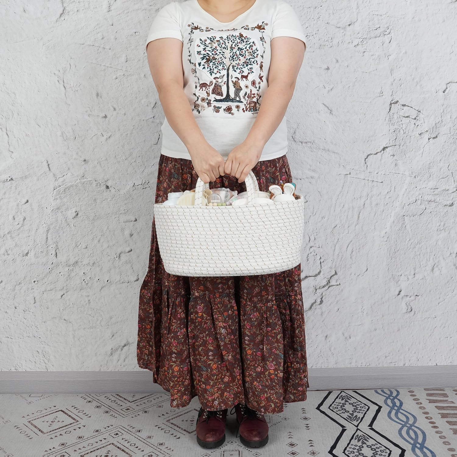- Flexible and Portable Diaper basket with removable divider: Featuring handles for effortless transportation, our diaper change caddy includes removable dividers for personalized organization. Adjust the internal layout as needed to accommodate various baby items. Move seamlessly from room to room or take diaper organizer caddy on the go for convenient access to baby essentials.
