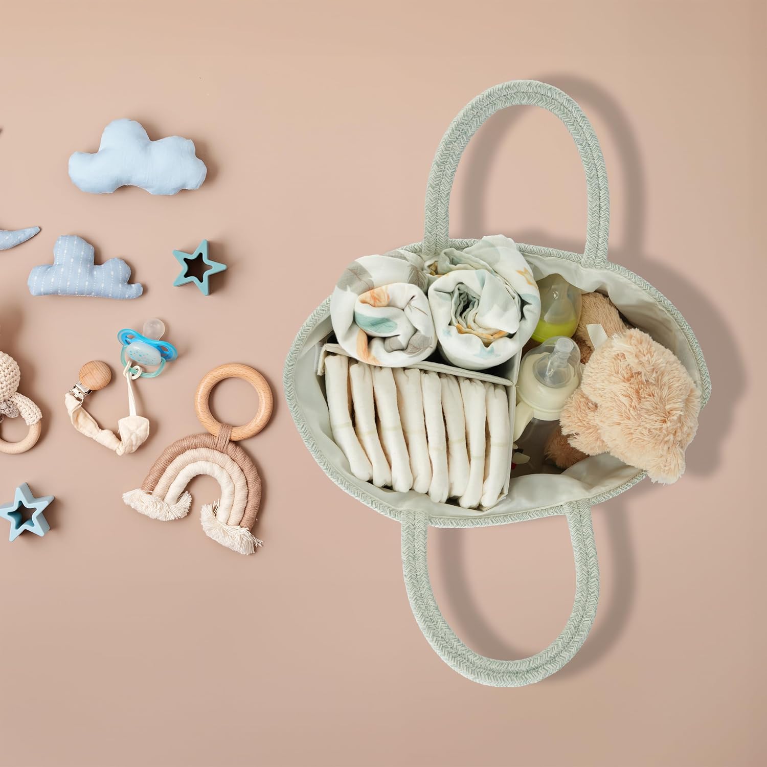 Diaper Caddy Organizer Cotton Rope Baby Basket Nursery Storage and Portable Tote Bag for Car Ideal Baby Shower Gifts and Registry Must-Have for Newborn Essentials light green