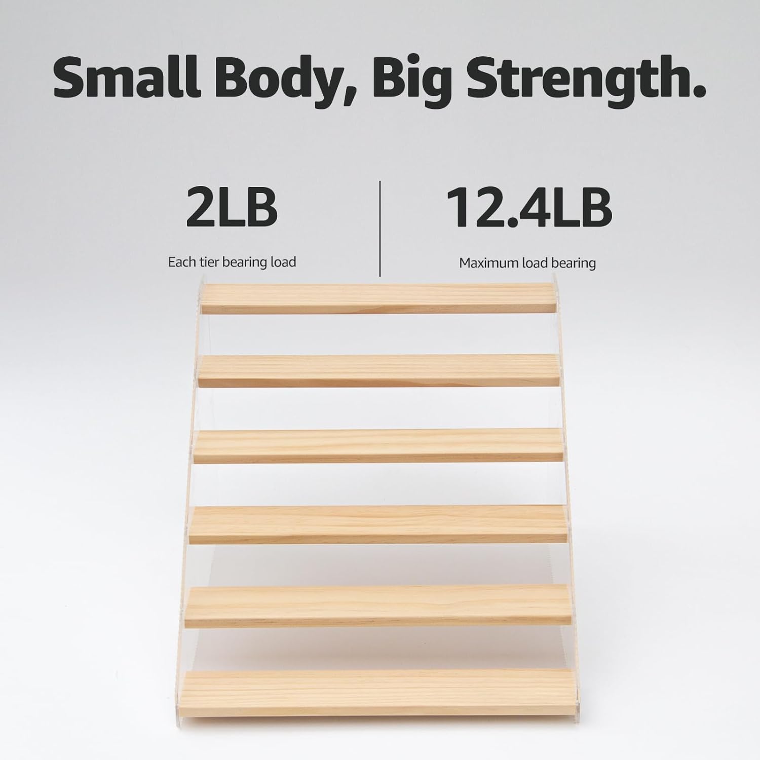 - Elegant & Sturdy: Risers display stands constructed from high-quality pine wood and corrugated acrylic, making it both aesthetically pleasing and fashionable, as well as durable and resistant to deformation, the spice shelf is a beautiful and robust addition to any space
