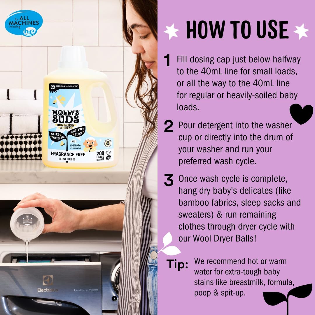 Molly's Suds Baby Liquid Laundry Detergent | Removes Formula, Poop & Spit-Up Stains | Extra Gentle for Infants, Babies, Toddlers (Sweet Baby Shea, 200 Loads)