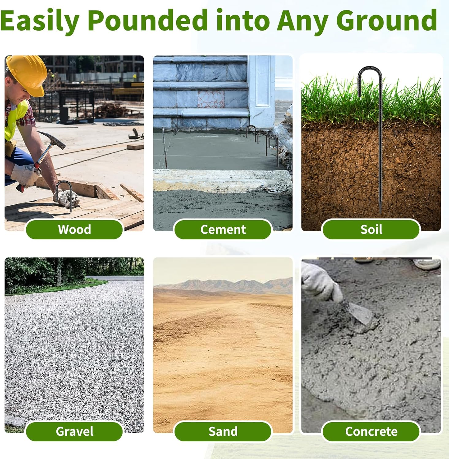 - 【Chisel Point End】The pointed end easily goes into soil and hard ground. Raised pressed surface provides strength in maintaining position. The rebar stakes are easier to install than other strap and spike systems and anchor downing anything on the rainy stormy days.