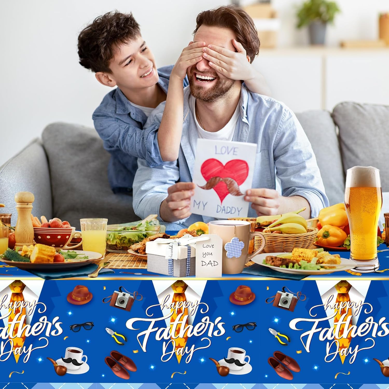 - 👨【Essential Fathers Day Themed Tablecloths】- You will get 2 Pcs happy father's day table covers, which can meet your different needs. You can use these 2025 Father's Day themed table cloths to decorate the tables, add a more active and cheerful atmosphere to your fathers day Party, making your dad day moment more happy and memorable.