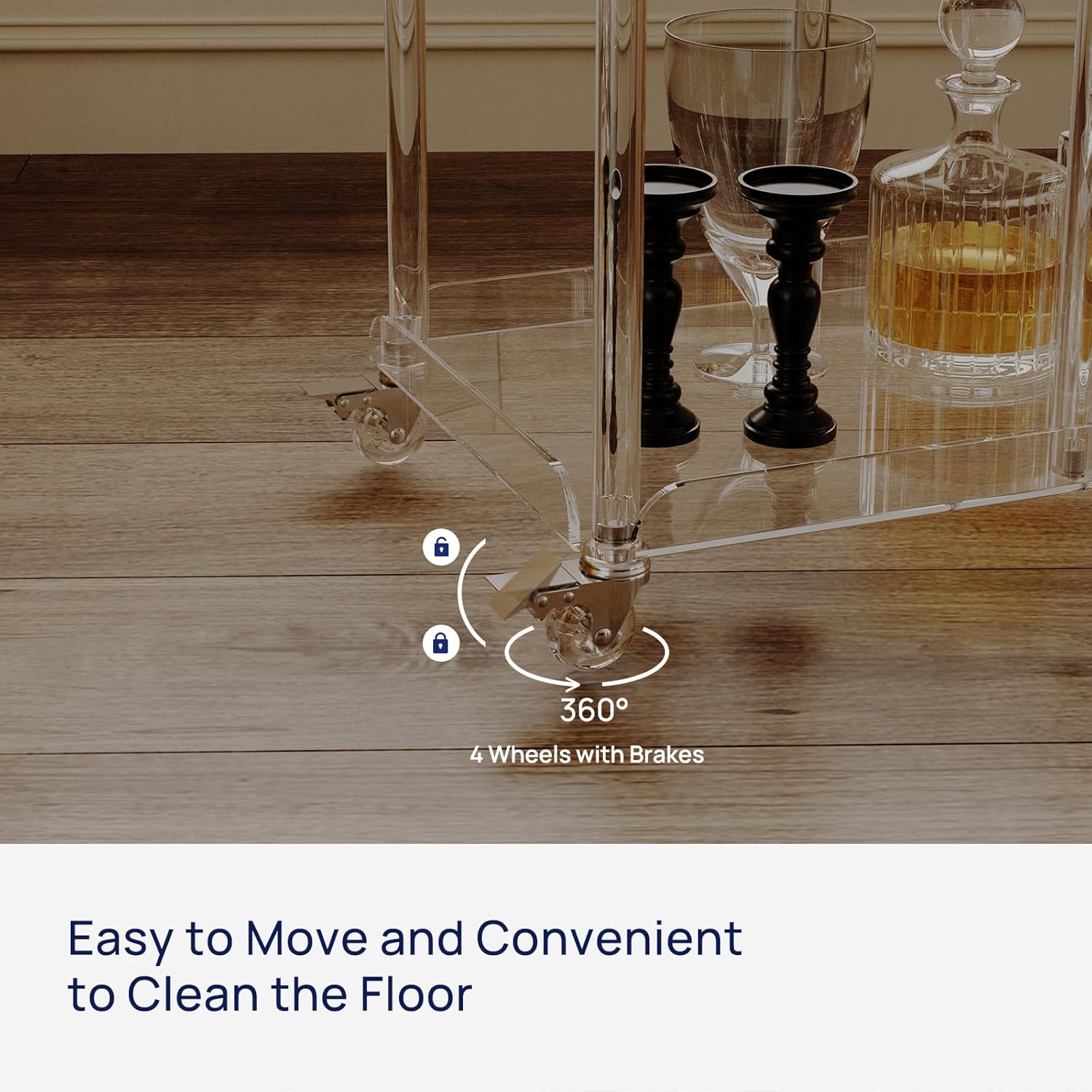 - Modern Bar Cart: Clear acrylic bar cart with 6 glass holders, modern and sophisticated. Fashional staggered layout design, suitable for various decoration styles and different cccasions.