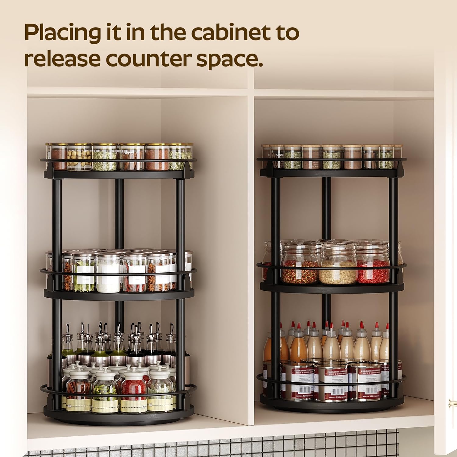 3-Tier Lazy Susan Organizer, Rotating Spice Rack, Spinning Organizer, Industrial Turntable Spice Rack Organizer for Cabinet, Kitchen Countertop, Pantry, Black SR23BK