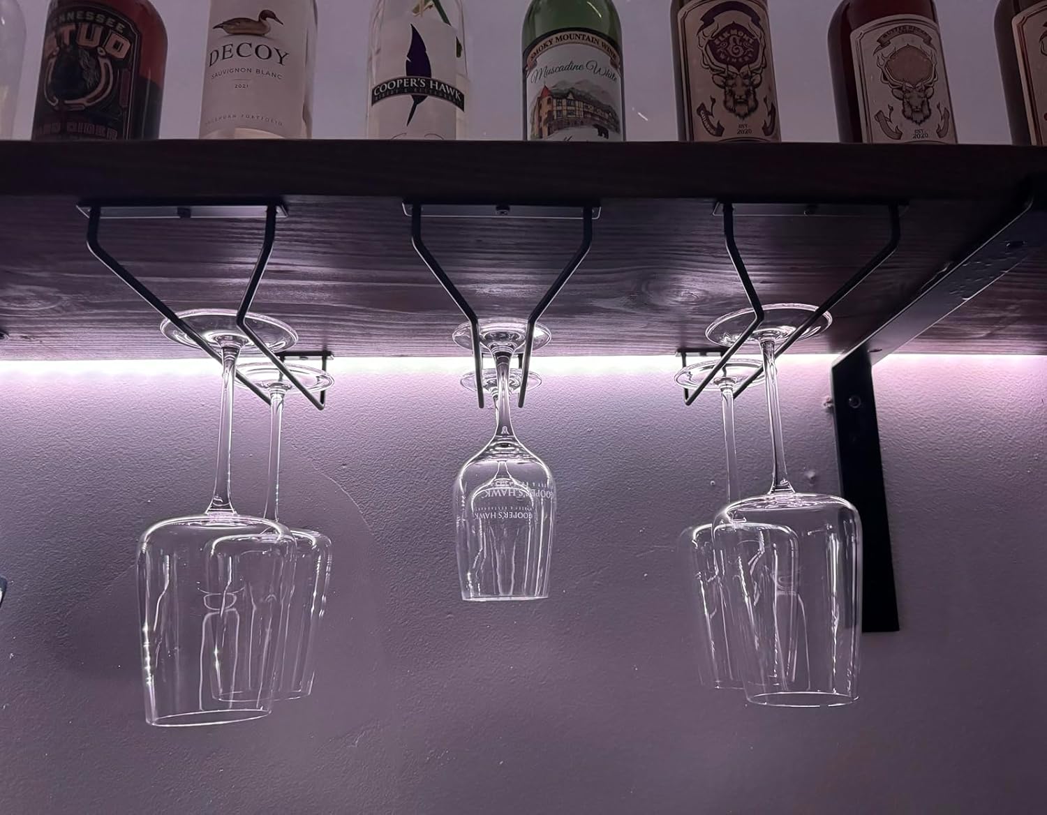 - EASY TO INSTALL: The wine glass holder comes fully assembled but requires installation. Hardware included for easy mounting. Installation is a breeze with the included screws and anchors. Fits under most cabinets. Enjoy the installation!