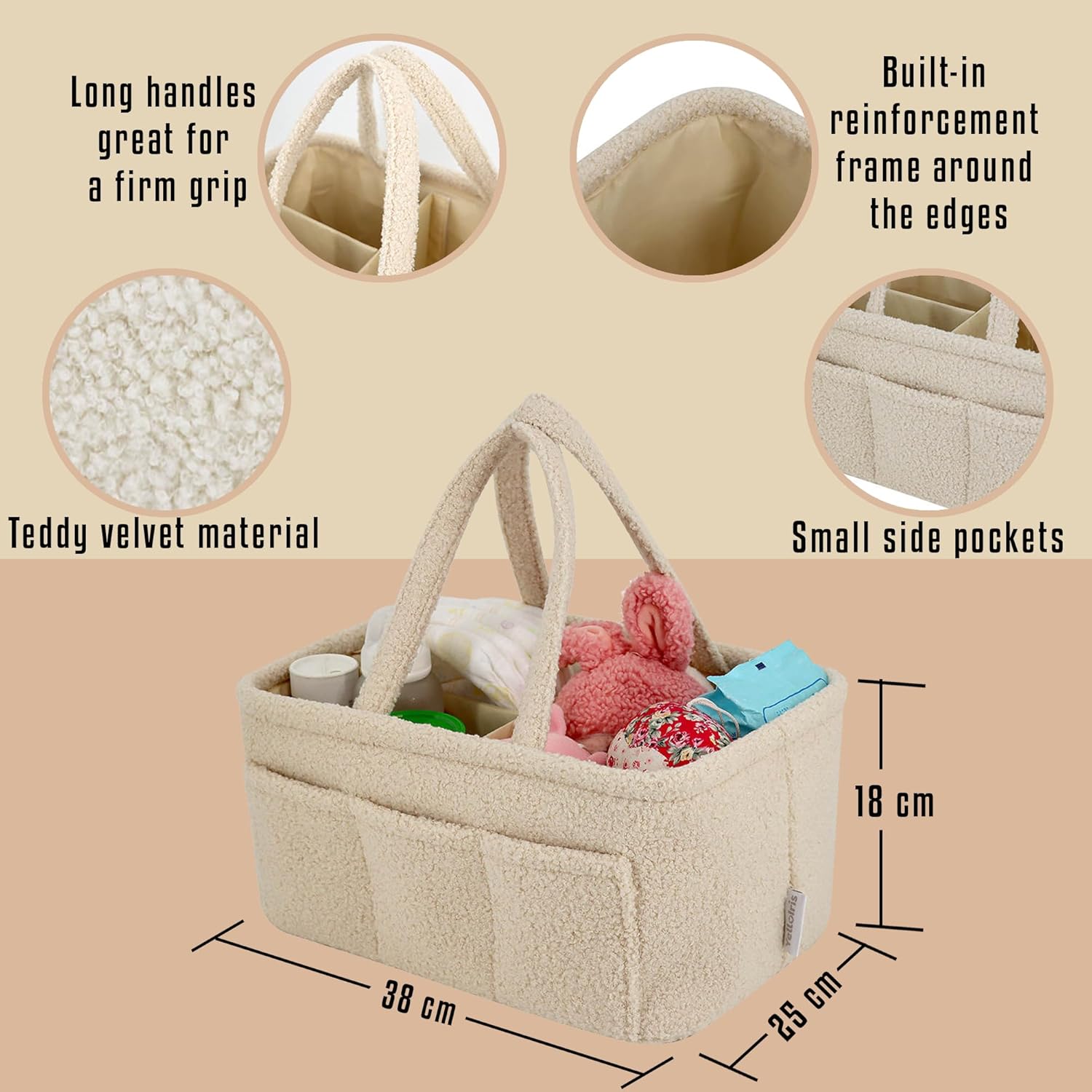 Baby Diaper Caddy Organizer – Soft Beige Sherpa with 3 Removable Compartments & 6 Side Pockets – Perfect Nursery Storage Bin & Car Organizer for Diapers, Baby Wipes, and Essential Supplies.