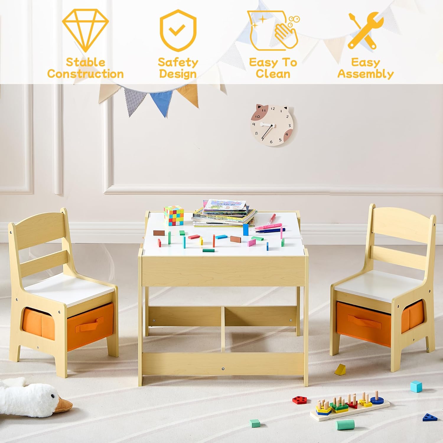 - 【Powerful Storage】Our DOREROOM toddler table and chair set is designed with multiple storage spaces. By lifting the tabletop, you'll find a spacious compartment where children can easily store building blocks, snacks and art supplies. Additionally, there are removable built-in storage drawers under the chairs for storing books, crayons and more. This will greatly encourage children to develop good organizing habits.