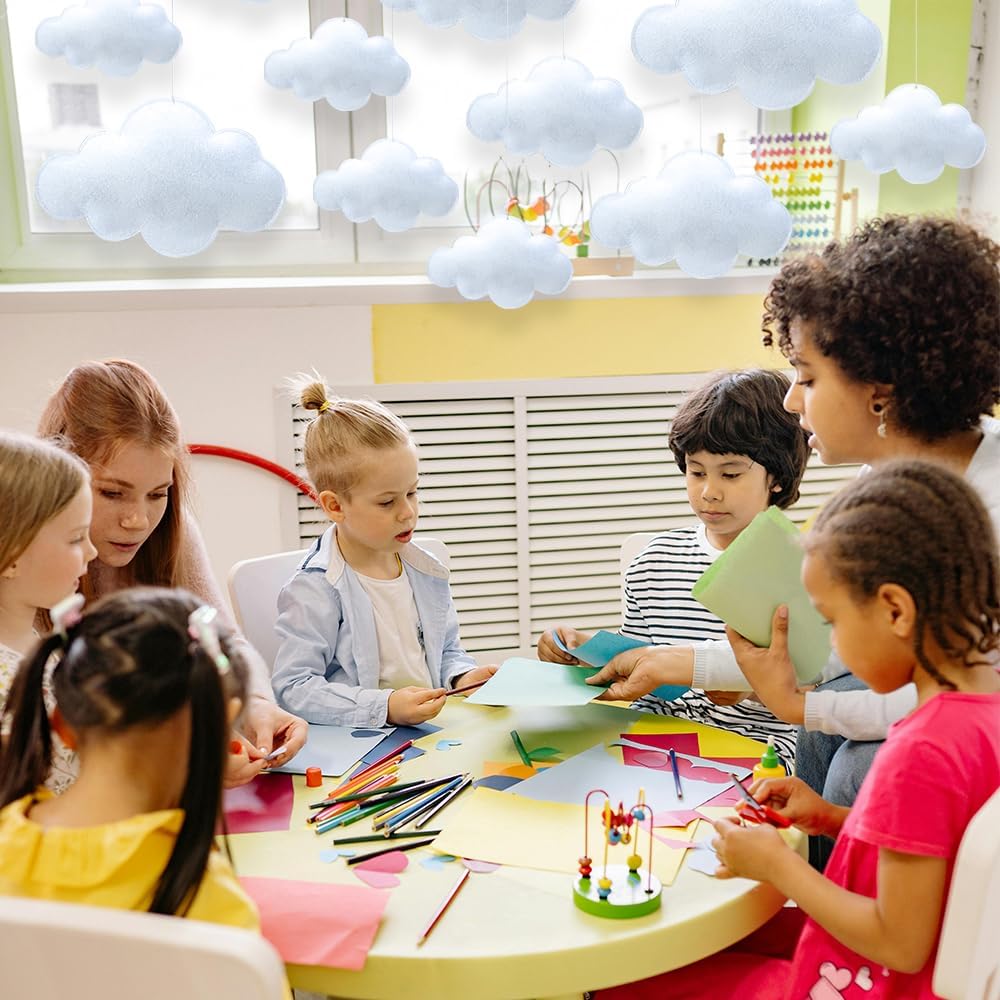 - Good Quality Felt Material: 3D simulated clouds for ceiling hanging is made of felt material, lightweight and will not leave obvious marks after curling; Interior filled with cotton, making them look fluffy, 3D, soft and comfortable, easy to hang and can be reused for multiple occasions