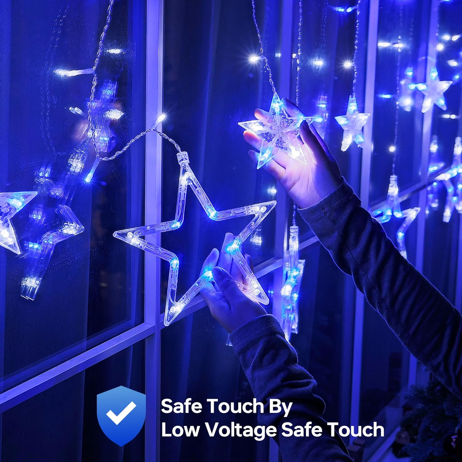 - Waterproof&Low-voltage:Our window string lights are made of waterproof high quality material with UL certified,strictly tested for safety use.Designed 30V powered by low- voltage.You can ensure that the touch is cool and does not overheat while ensuring the brightness of the light source. Warm Tips:The plug is not waterproof ,please keep the plug away from the water.