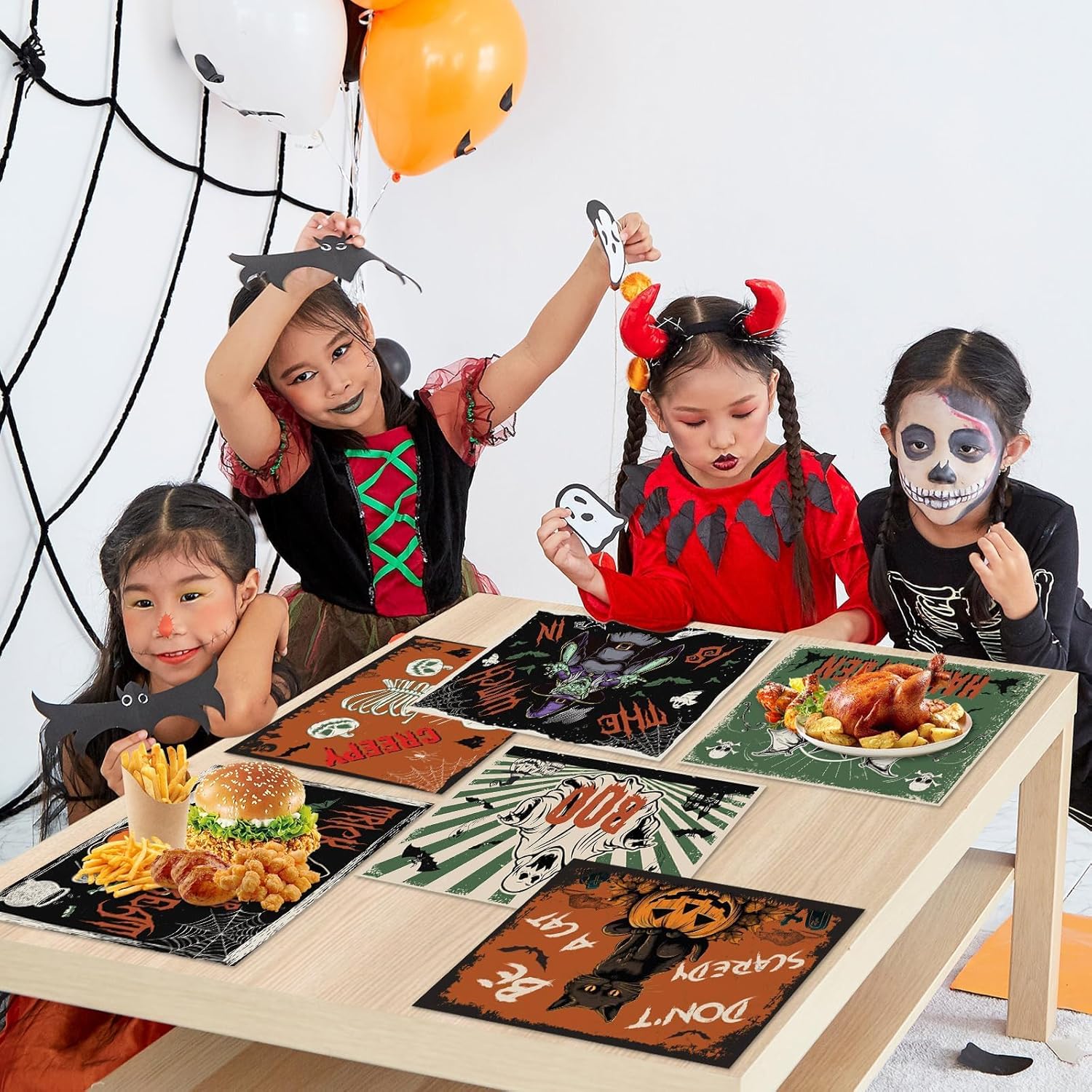 - Package includes: The package comes with a Halloween Placemats Set of 6, each designed differently to suit your needs and make your home look different, which will give you a different experience. Halloween table mats are sure to be a hit at your event.