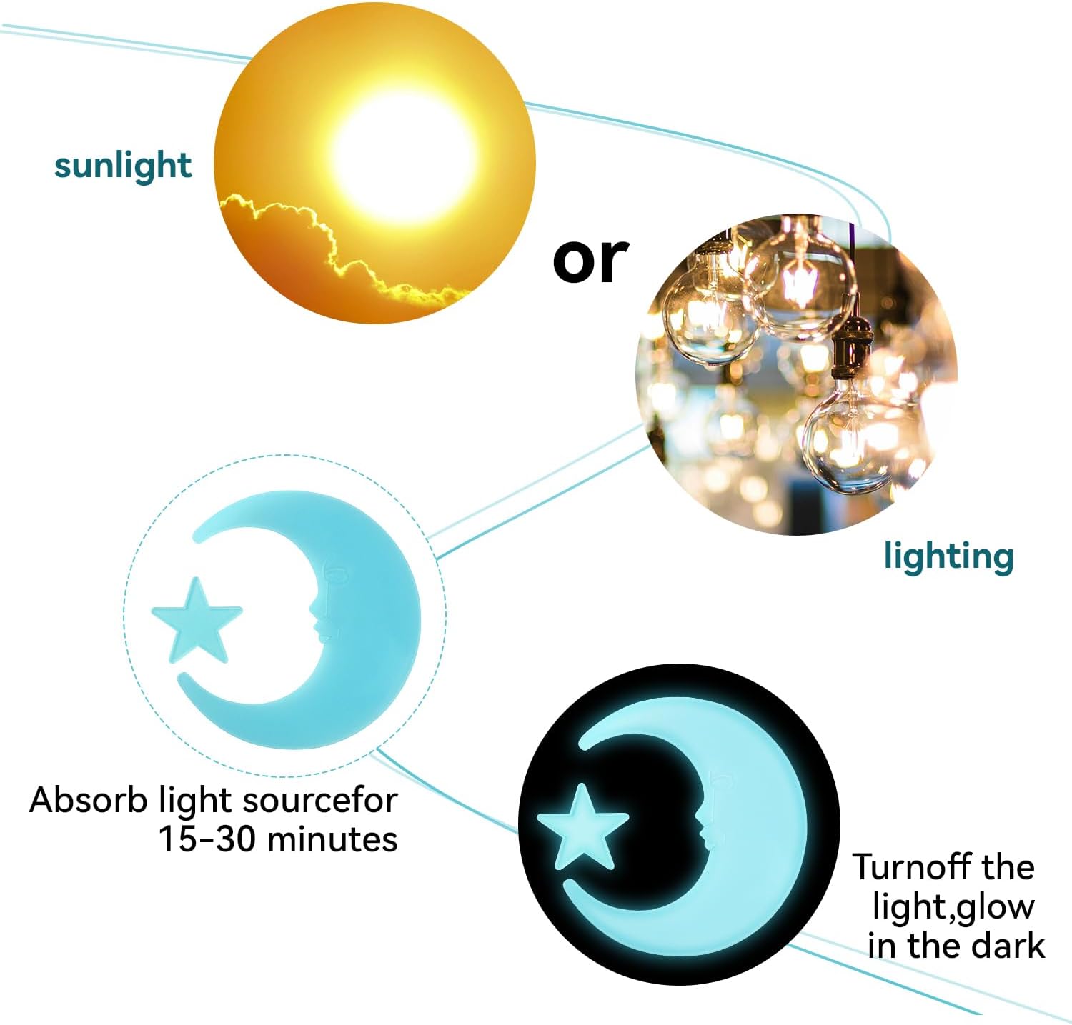 - Theme : 3D Plastic Glow Stars Moon for Ceiling