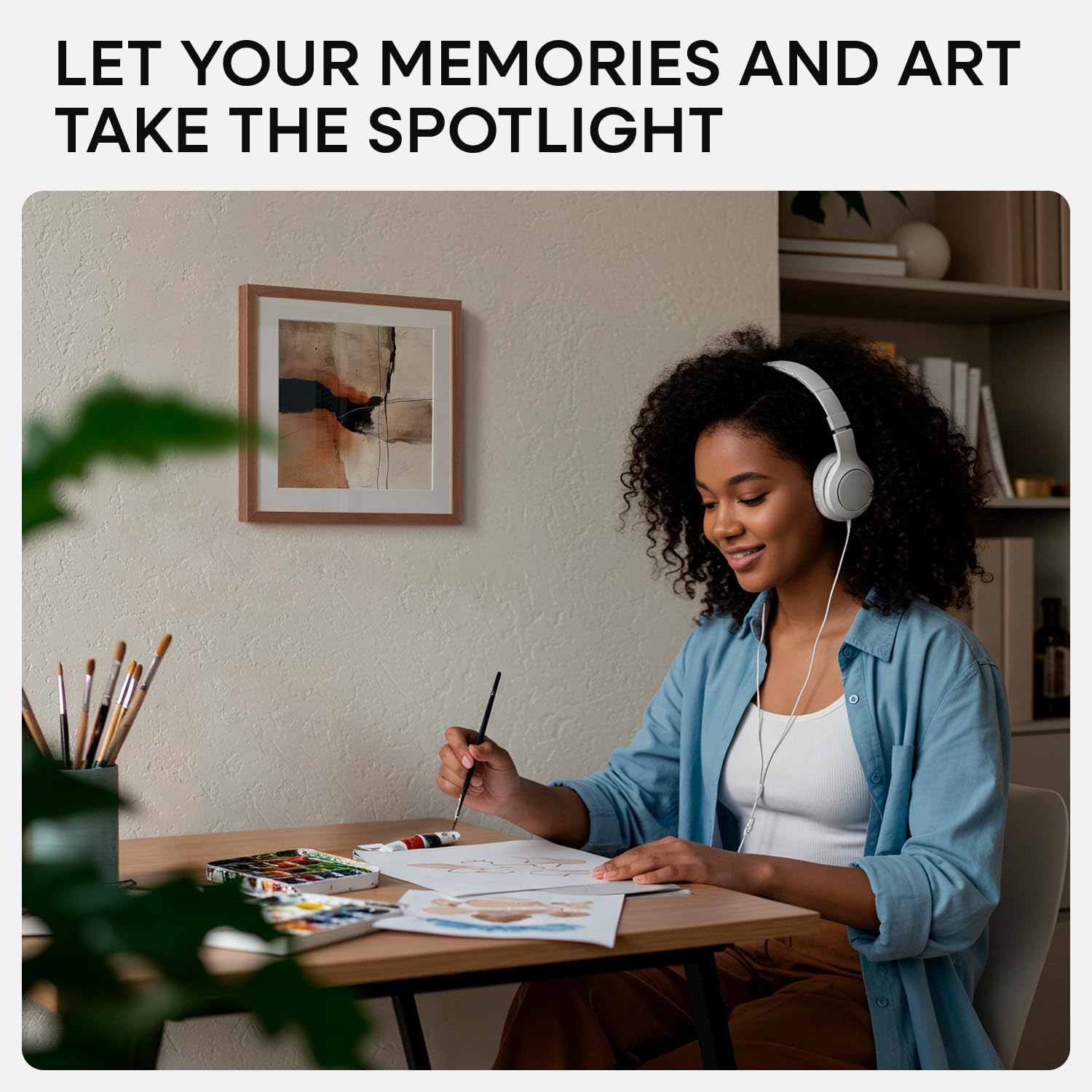 - MATTED OR EDGE-TO-EDGE—YOUR CALL. A crisp 9x9 white mat creates negative space, elevating your image with gallery precision. Or remove it for 11x11 bold, uninterrupted impact.