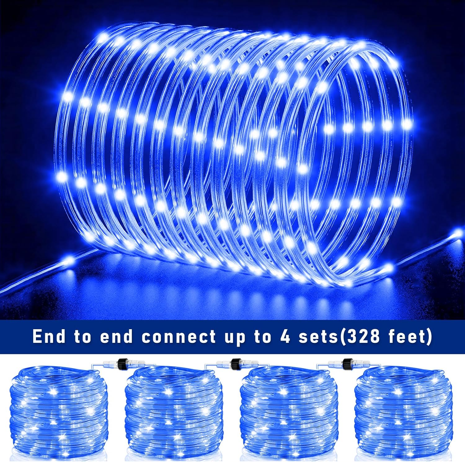100FT 300 LED Rope Lights Outdoor, Plug in Christmas Rope Lights for Indoor with 8 Modes, Waterproof Connectable String Lights for Outside Patio, Deck, Pool, Stair, Camping Lighting - Blue