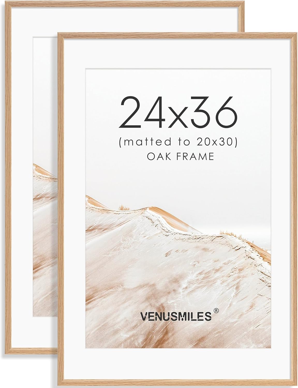 24x36 Poster Frame Set of 2 Natural Solid Oak Photo Frames with 20x30 Removable Mat Wall Hanging Large Handcrafted Frame with HD Plexiglass Wall and Tabletop Display Large Picture Frame