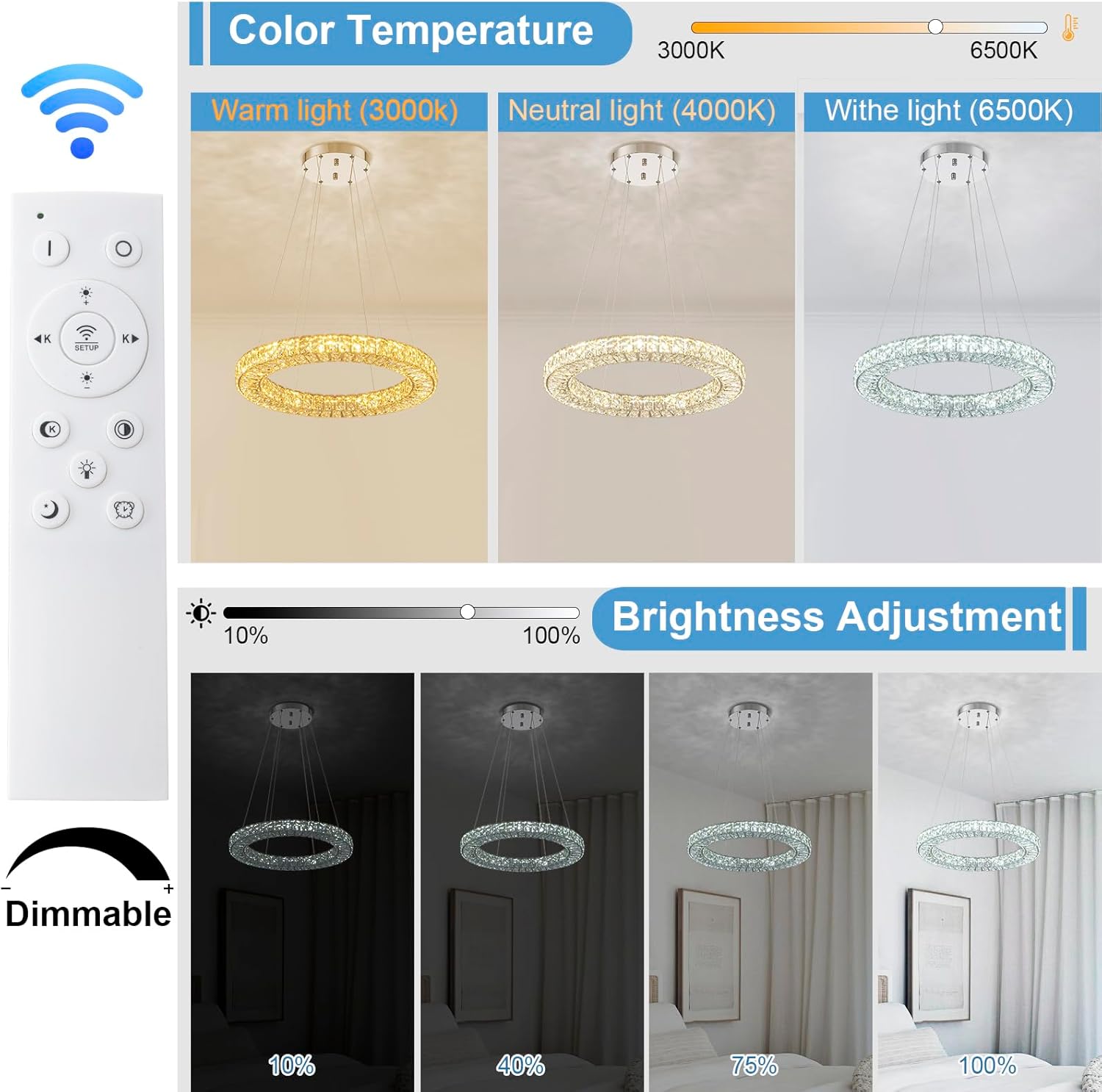 - Package Included: 1x round crystal chandelier, 1x remote, with mounting accessories and installation instructions for fast and easy installation.