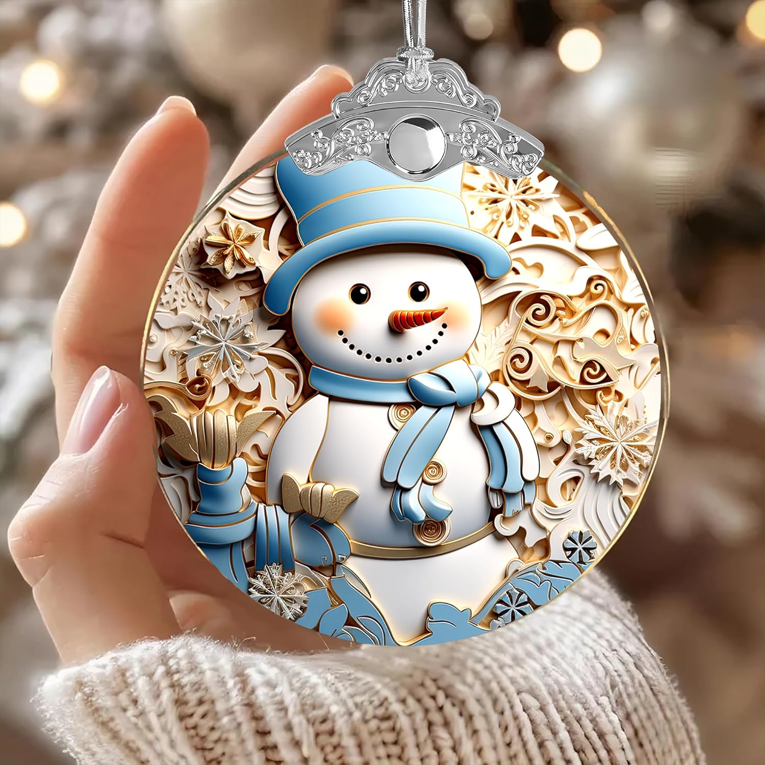 2025 Christmas Ornament, Stained Glass Effections, Christmas Tree 4 Inch Acrylic Ornament Art, White Elephant Gifts Car Interiors Decors, Christmas Decor (Blue hat Snowman)