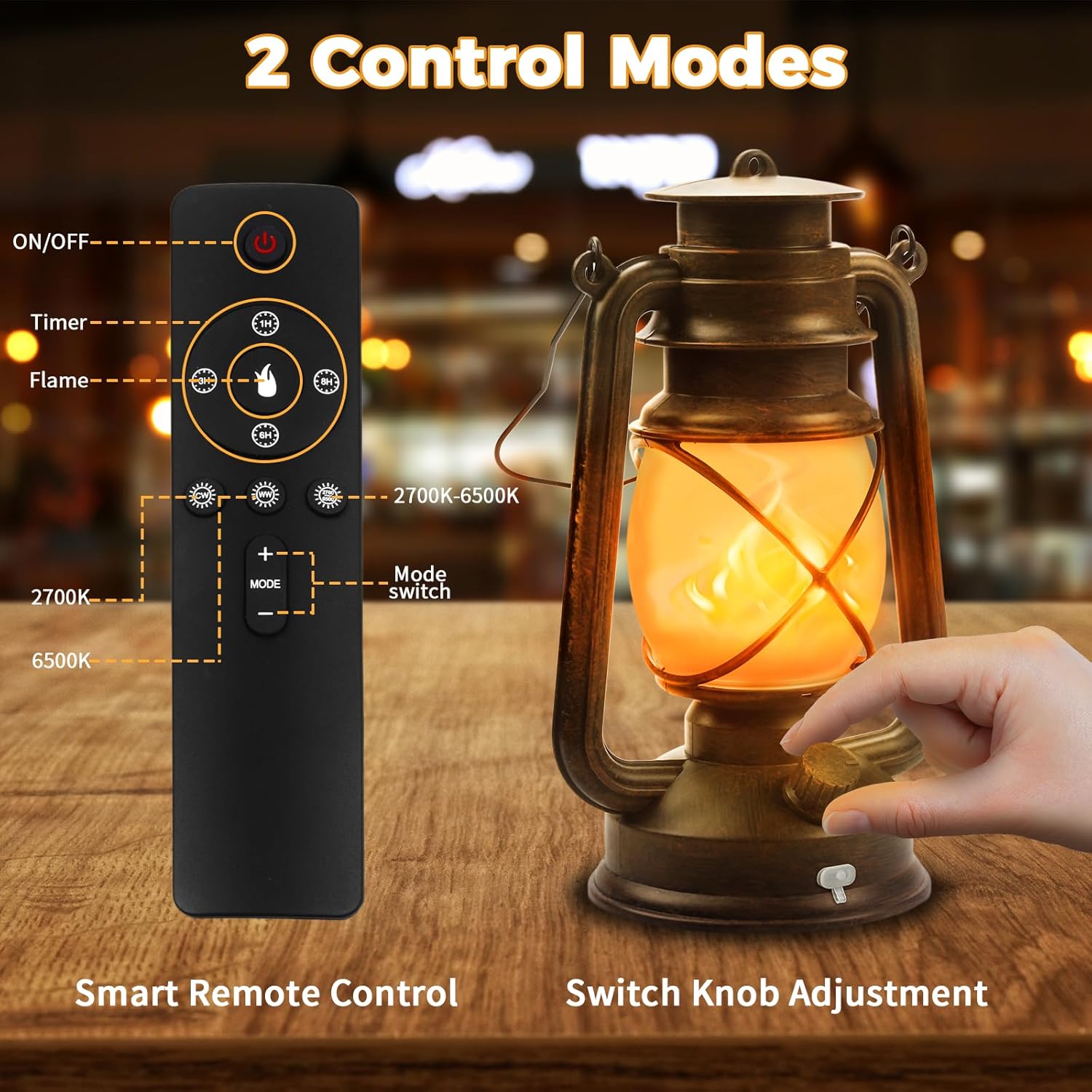 - Easy to Operate Remote Control: With the remote, you can change light patterns like steady or flickering light from afar and set timings, such as dusk-on and dawn-off. Whether the lantern's hung on the porch or in a hard-to-reach spot, it's easy for you to control, helping create a pleasant ambiance to comfortably enjoy the warm glow