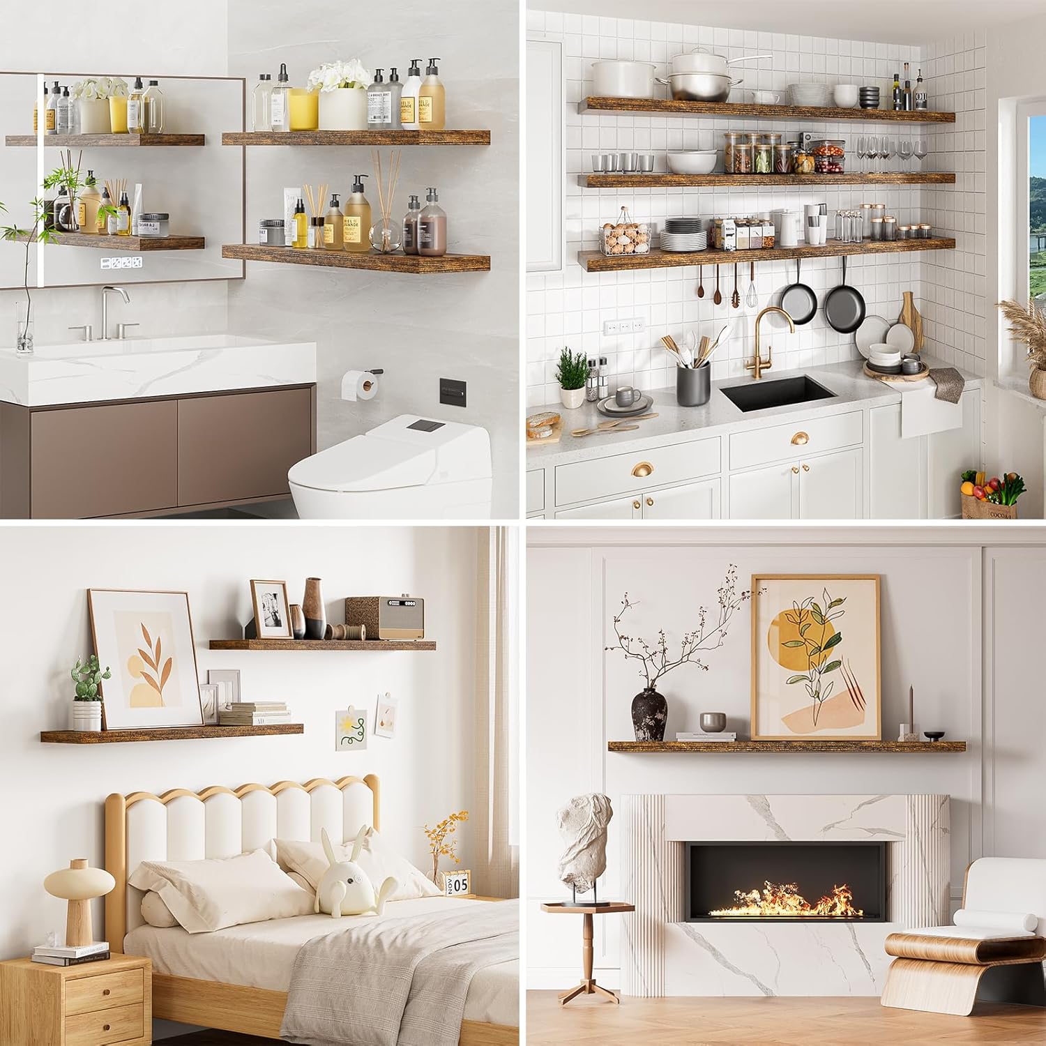 - ăMulti-used ApplicabilityăInvisible long floating shelves for wall for living room,bedroom,study,bathroom & kitchen decor.It can be used as wall shelves for bedroom,wall shelves for living room,floating shelves for kitchen,floating shelves bathroom,coffee bar shelves,etc..