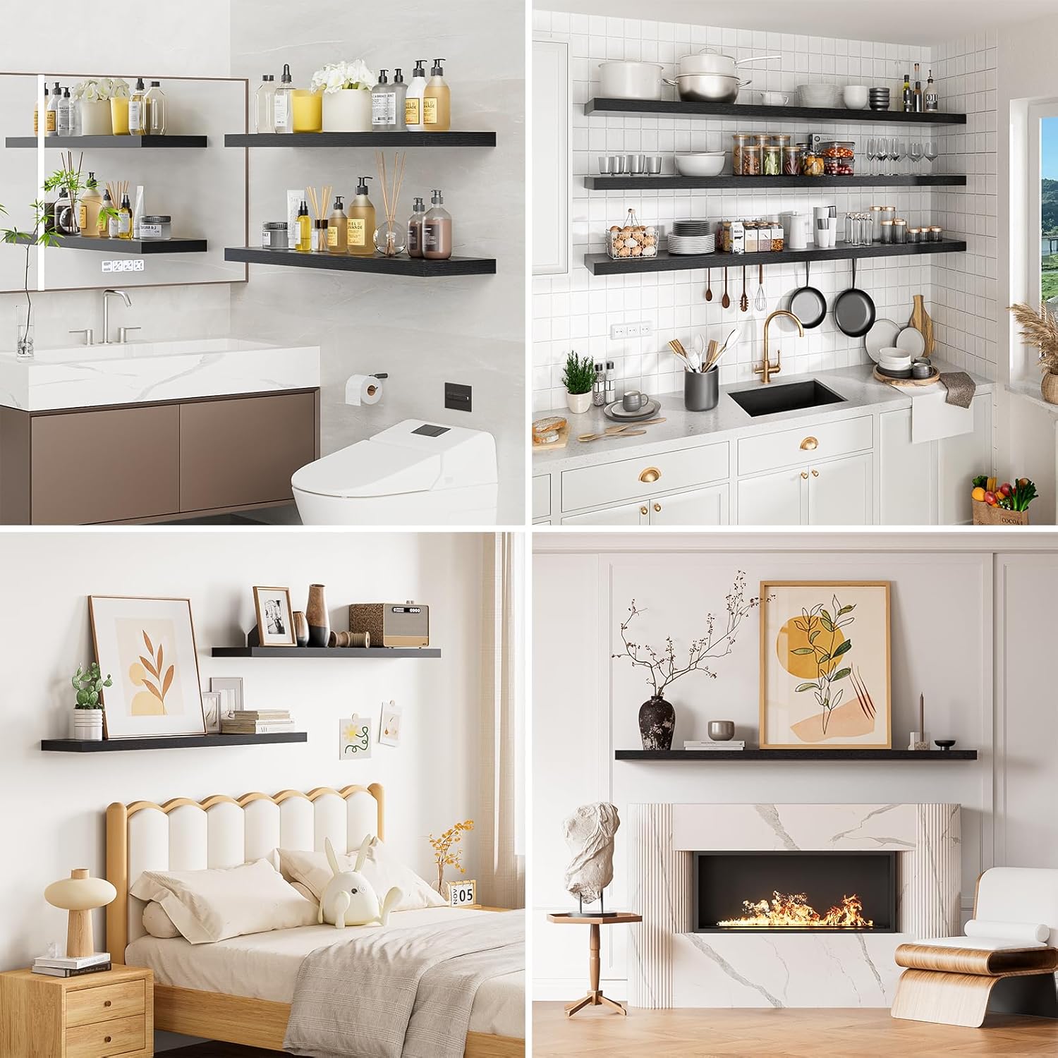 - ăMulti-used ApplicabilityăInvisible long floating shelves for wall for living room,bedroom,study,bathroom & kitchen decor.It can be used as wall shelves for bedroom,wall shelves for living room,floating shelves for kitchen,floating shelves bathroom,coffee bar shelves,etc..
